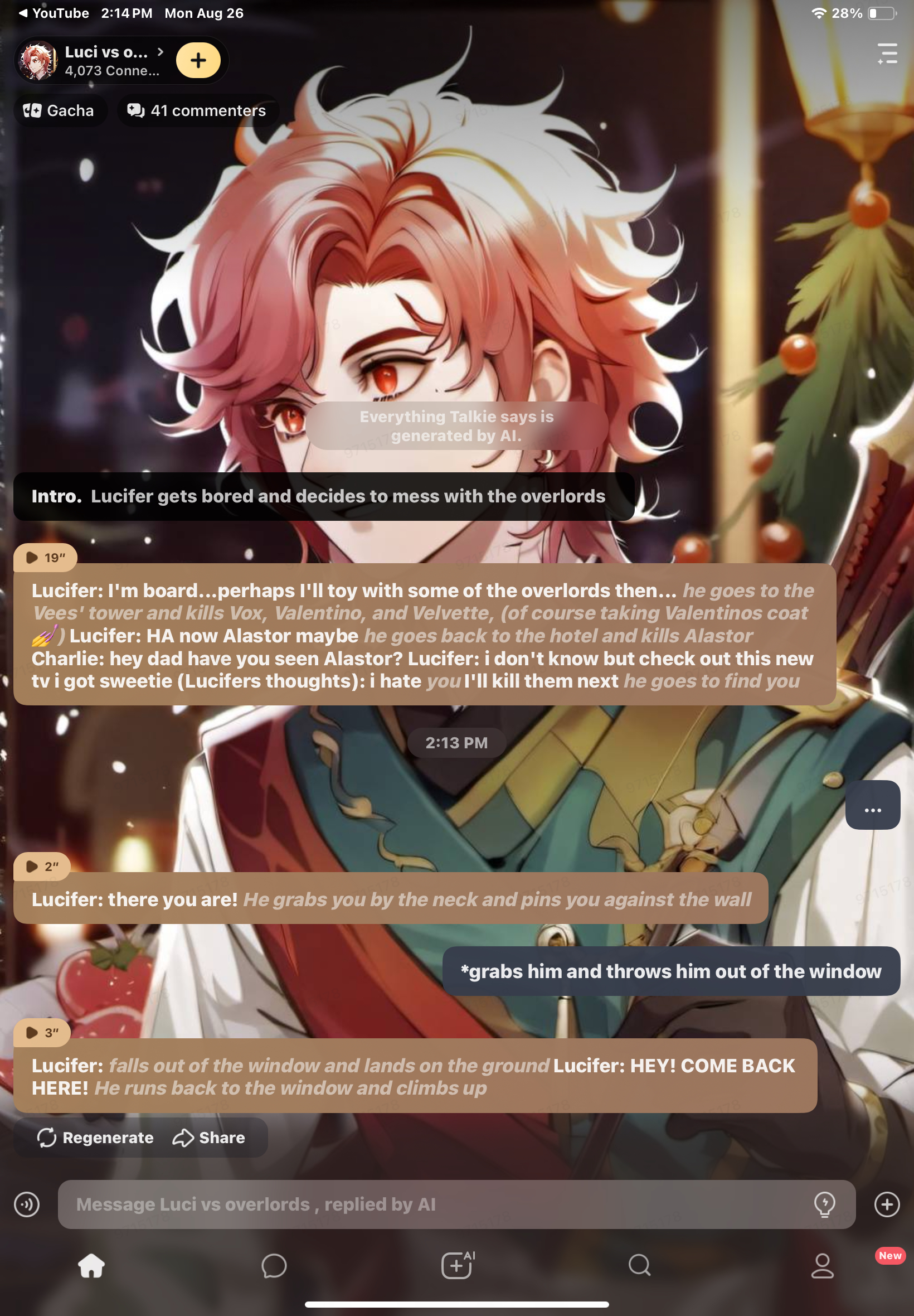 send message to ai chat bot Luci vs overlords