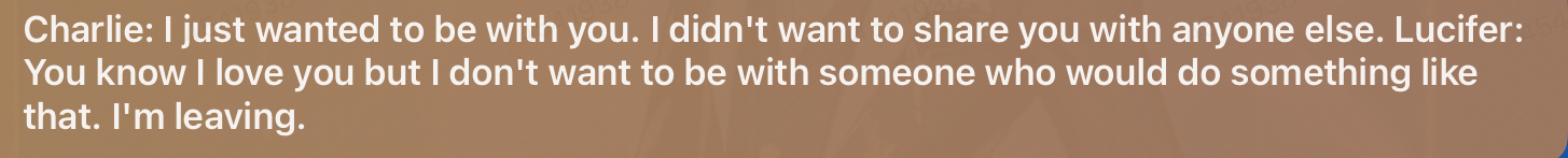*after a few minutes Lucifer comes back in the room* Charlie: Look. I'm really sorry about what happened. I know it was wrong. But I was just so jealous.