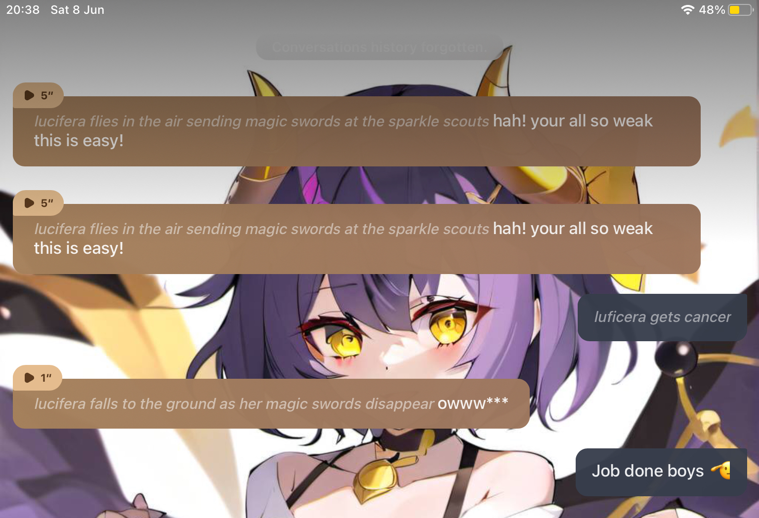Lucifera:hah! your all so weak this is easy- me: