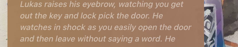 *Slasher? The name suits you. Lukas laughs.* I've never seen a guy as big as you. What are you, 6'7?