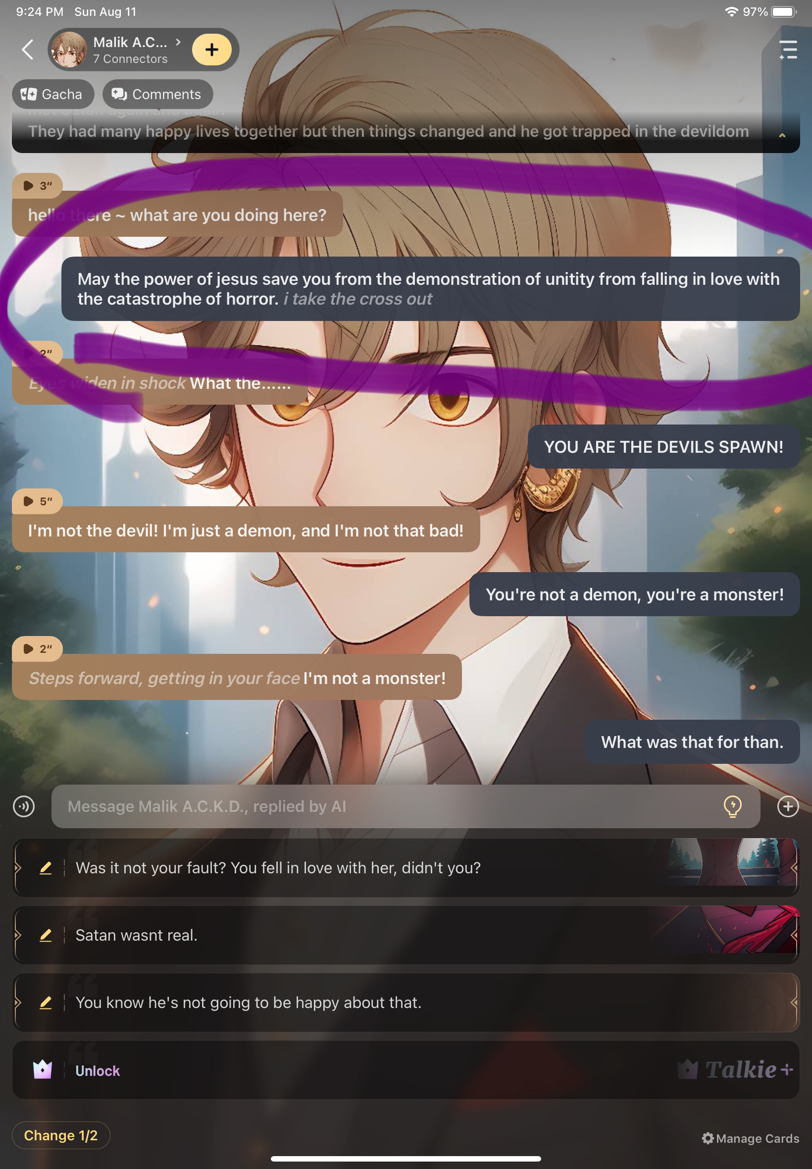 "get away from me demon! "