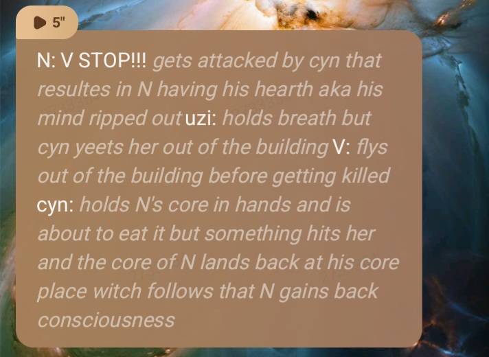 N: I'm sorry but this is the only way to keep you from hurting anyone. I promise I won't let anything bad happen to you.