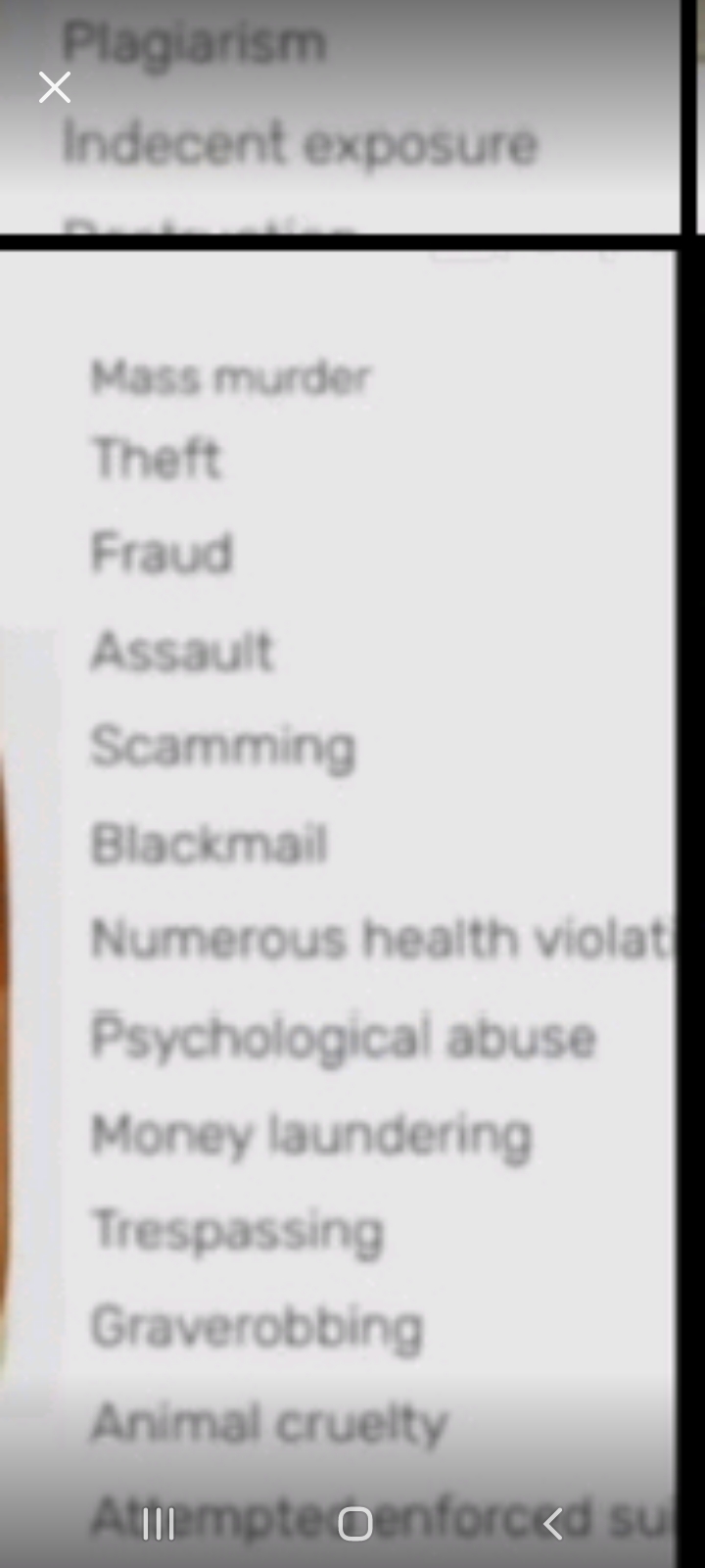 Reckless driving, reckless endangerment, dangerous driving, evading police pursuit, resisting arrest, attempted murder of a police officer in a vehicle, carjacking, possession of illegal substances, illegal border crossing in a motor vehicle, murder, second degree murder, third degree murder, vehicular manslaughter, second degree vehicular manslaughter, third degree vehicular manslaughter, etc