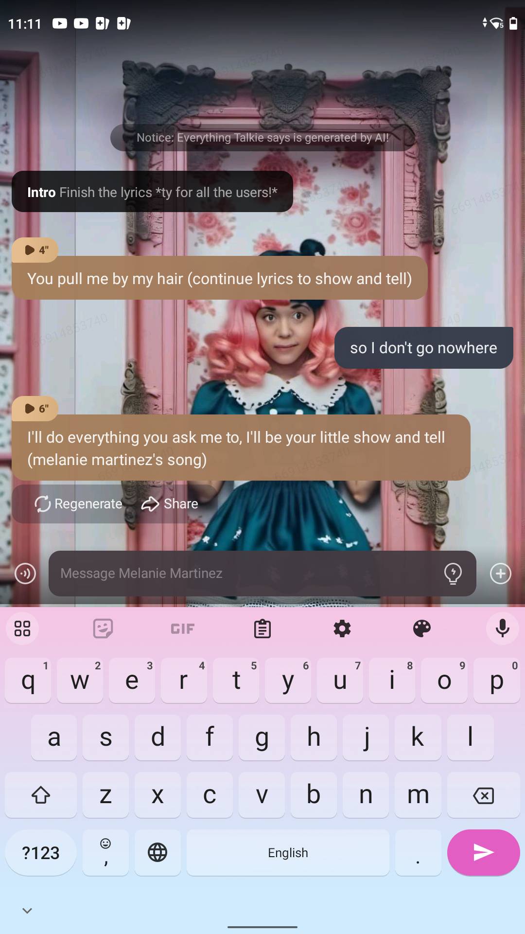 You pull me by my hair (continue lyrics to show and tell)