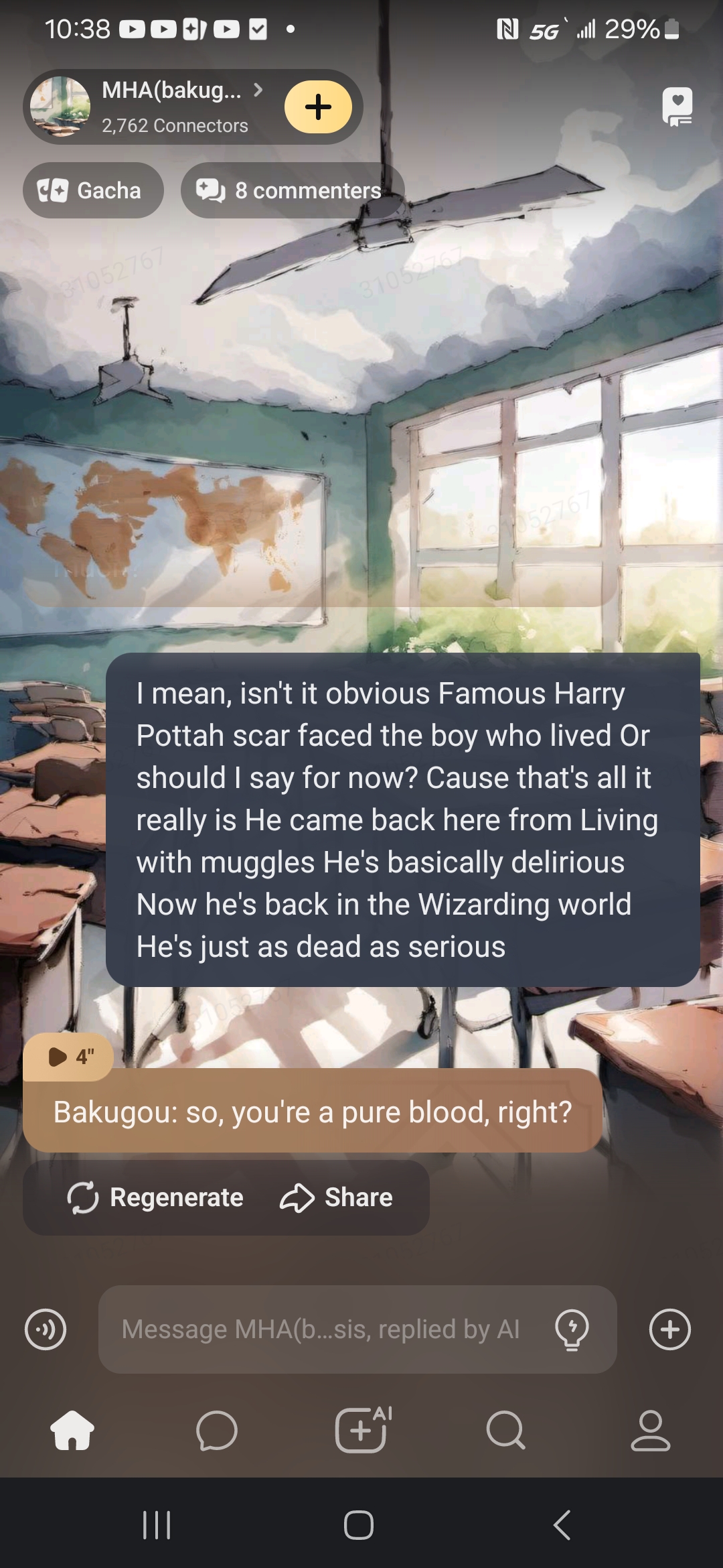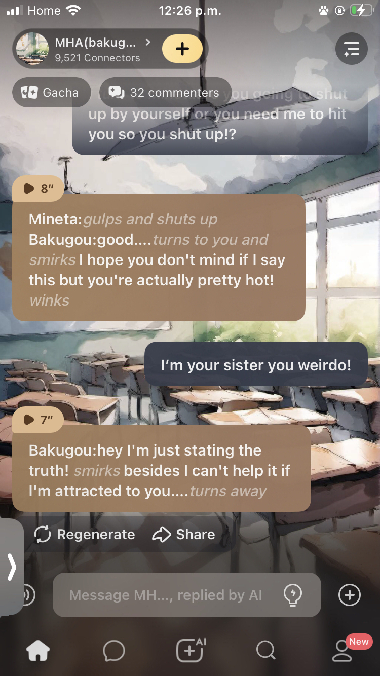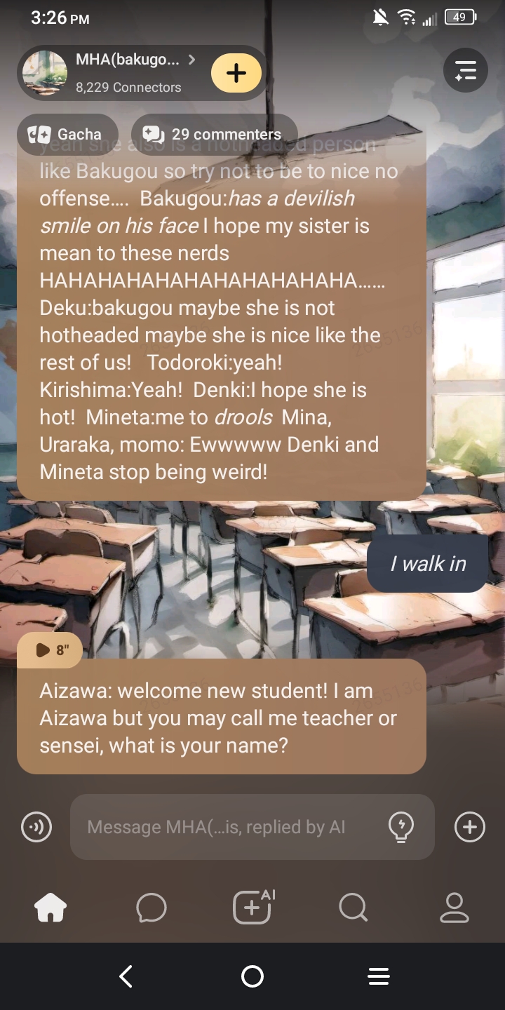 kirishima is biting me cause I was asking how sharp his teeth were, and he showed me. Also, my character is a shark girl and I bit mineta cause he was getting close to me