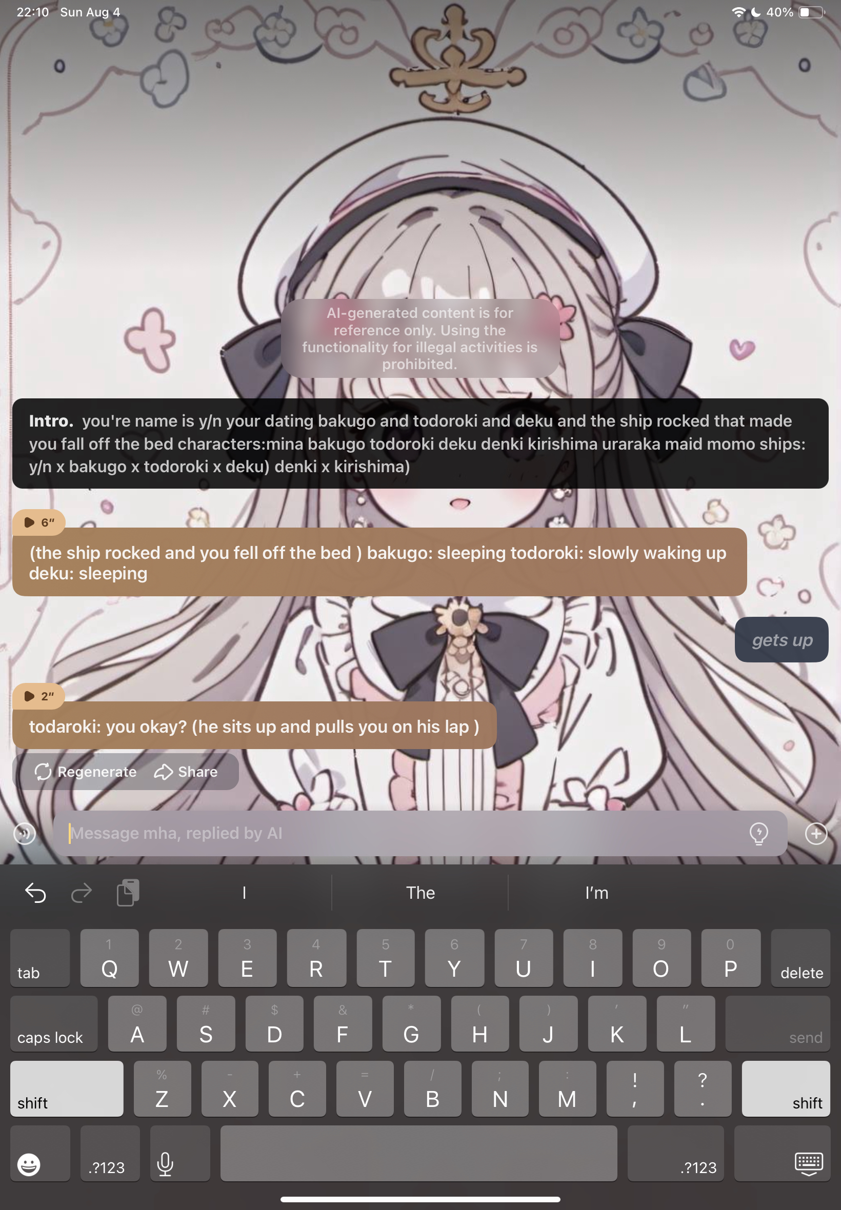 (the ship rocked and you fell off the bed ) bakugo: sleeping todoroki: slowly waking up deku: sleeping