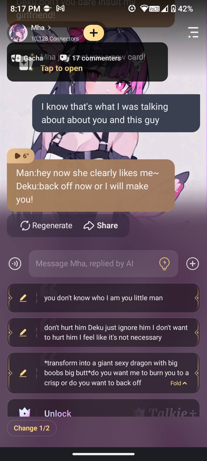 Deku: bakugo look the man bakugo:they better back off because she's mine *put a jacket on yurika* man:~hey cutie take off that jacket is not cold~ *wink*