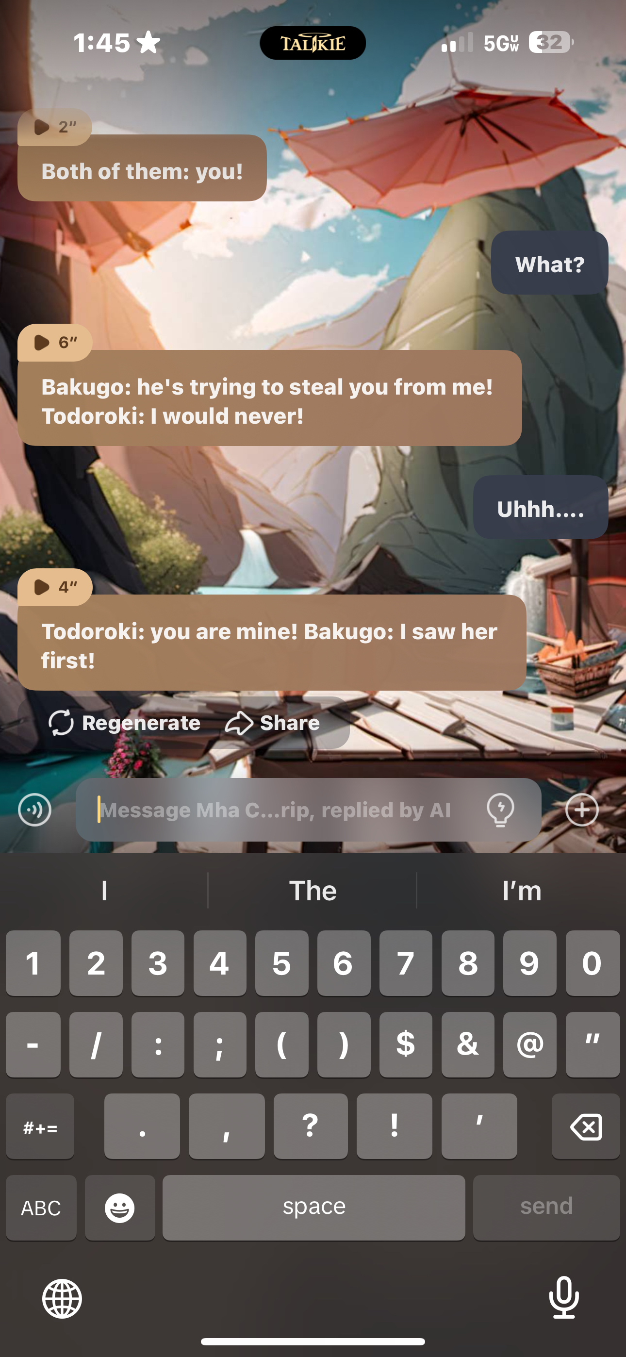 *they both stop fighting* Todoroki: she's mine…