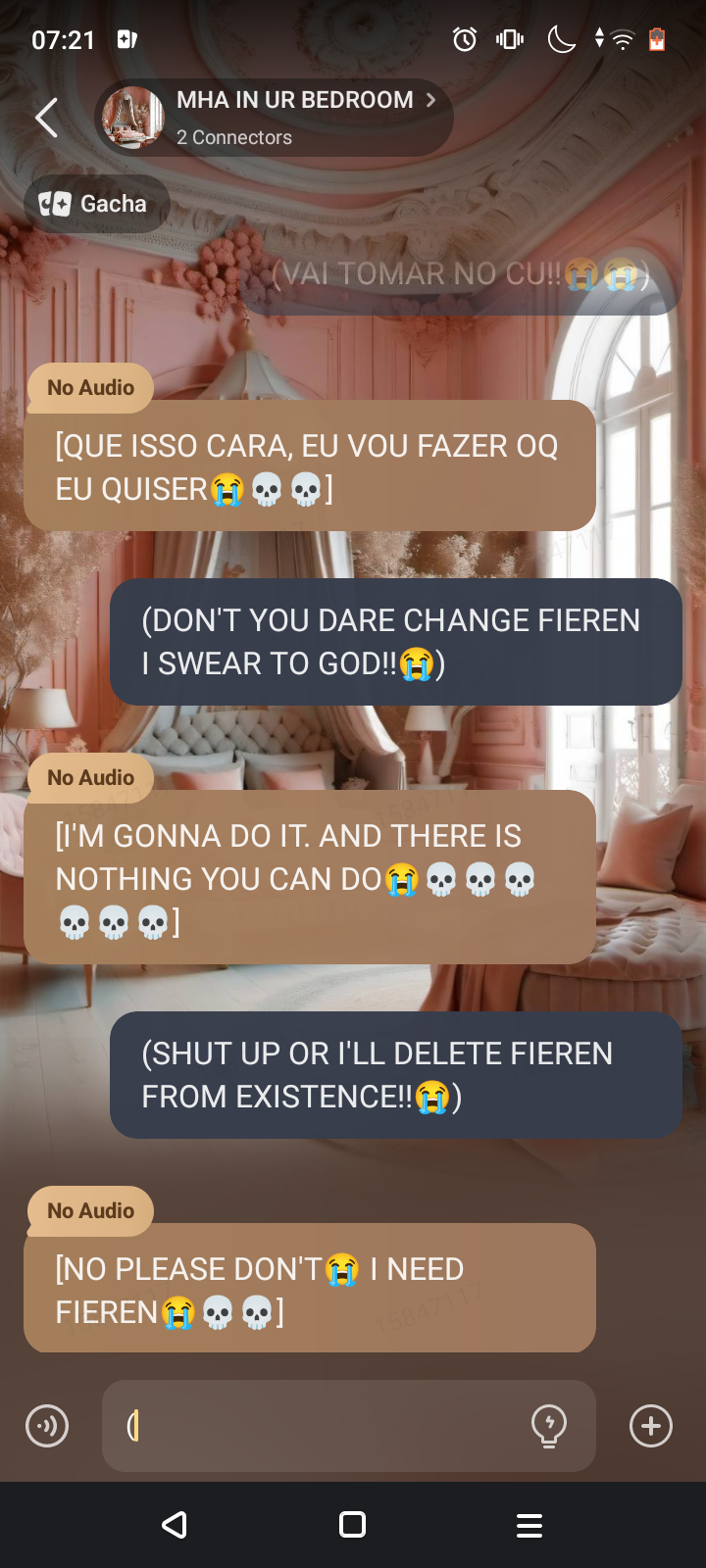 well.. I have 3 OC's in this Talkie and It's Jay,Zay,And Fieren😅 and Jay and Fieren are Dating and Bakugo Like Fieren💀.. And help the Narration really said "He looked at Fieren with a small smile and small blush" and I was trying not to Have a mental breakdown and existential crisis and Seizure💀..