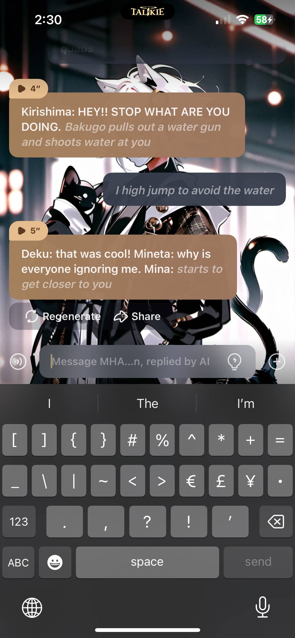 send message to ai chat bot MHA spot a therian