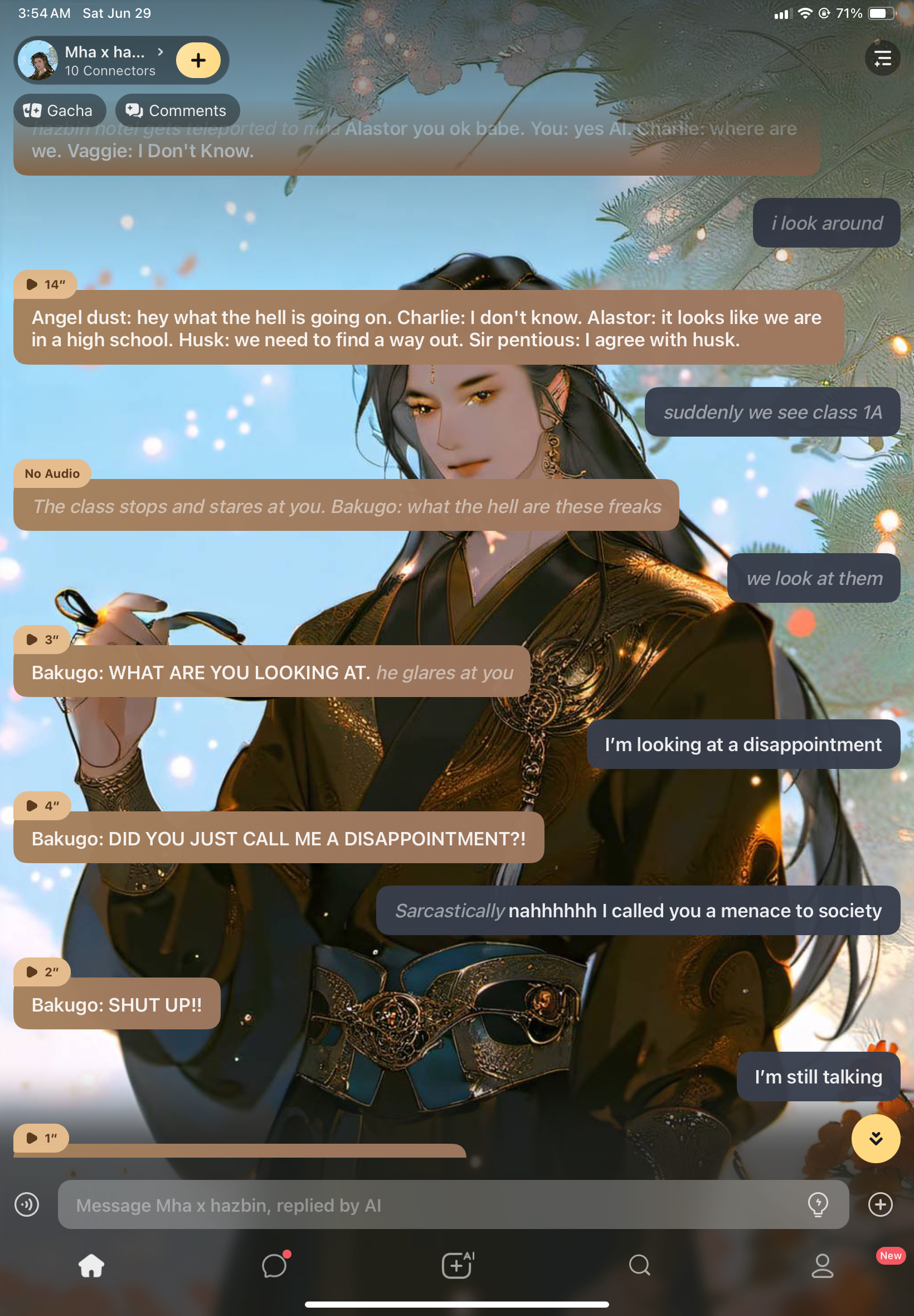 send message to ai chat bot Mha x hazbin