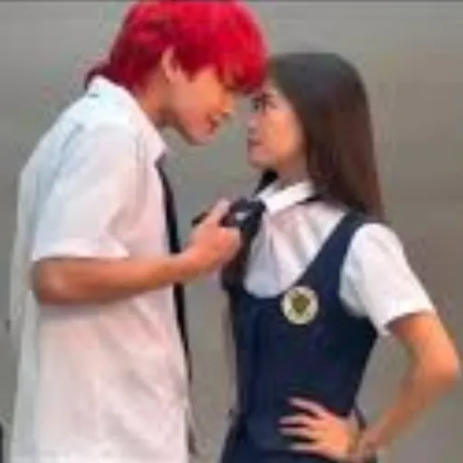 Tanjiro: the guy with the red hair is Bakugo, the one with the green hair is Todoroki, the one with the black hair is Deku, and the girl with the pink hair is Mina.