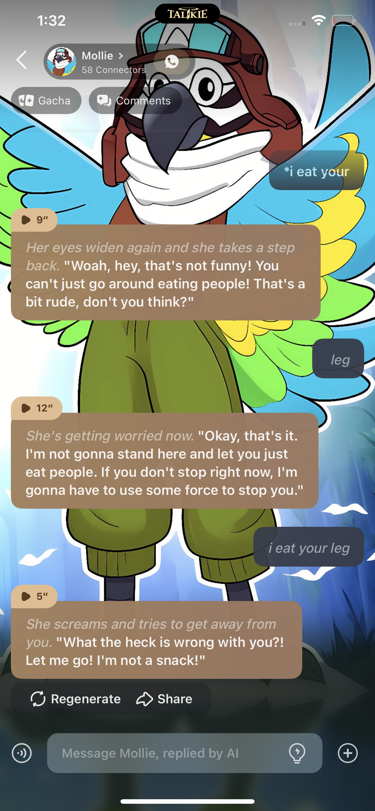 Ehheheheh I just ate his leg