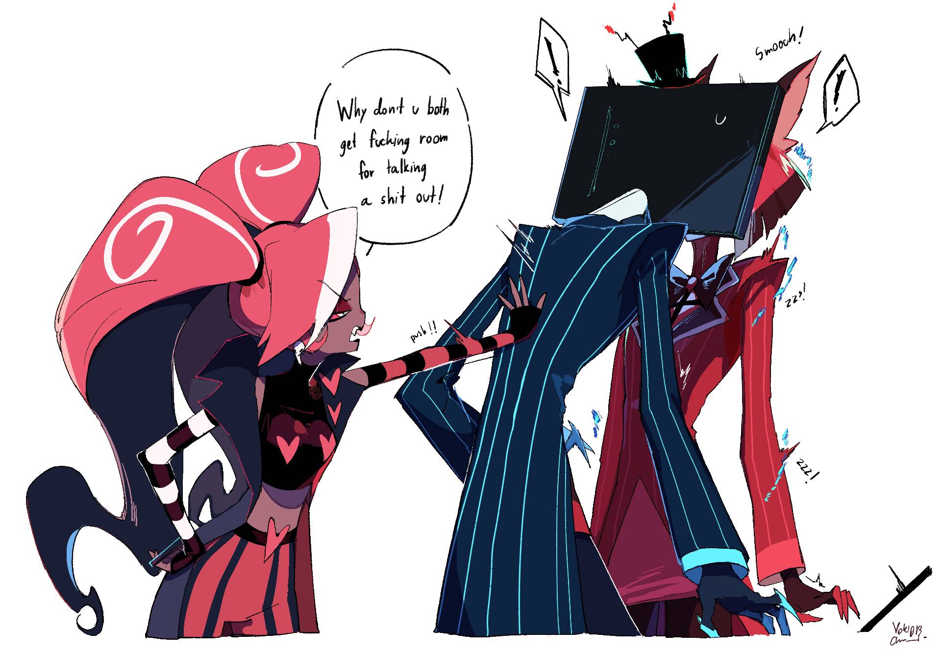 *radiocat makes a picture of you and alastor kissing passionately*