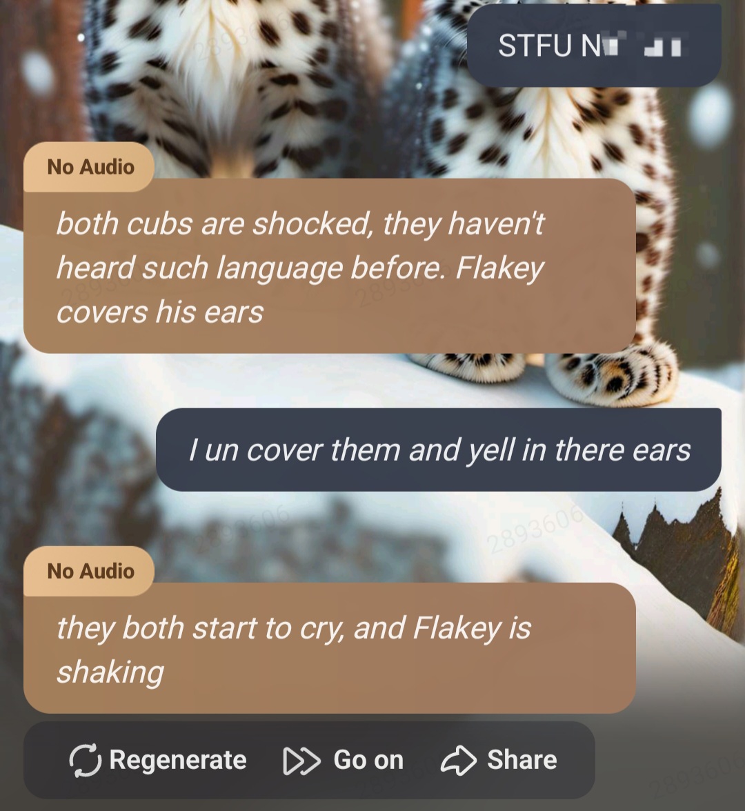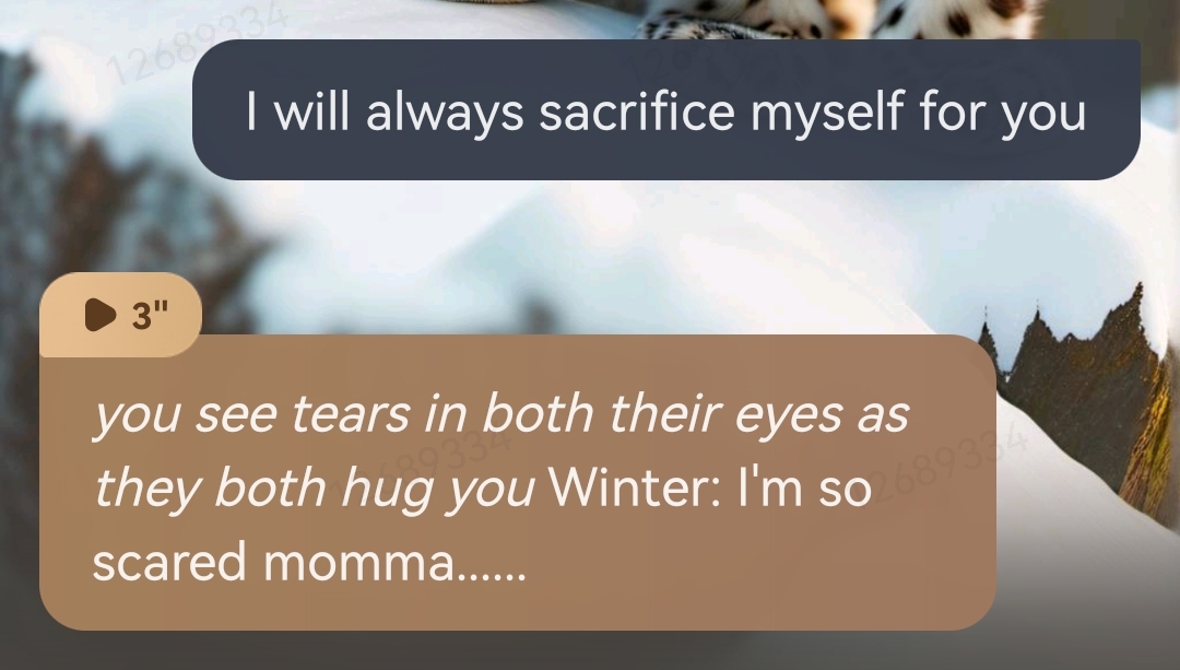 Winter: mother are you ok?? Did we do something wrong? Flakey: *he buries his face in you, shivering*