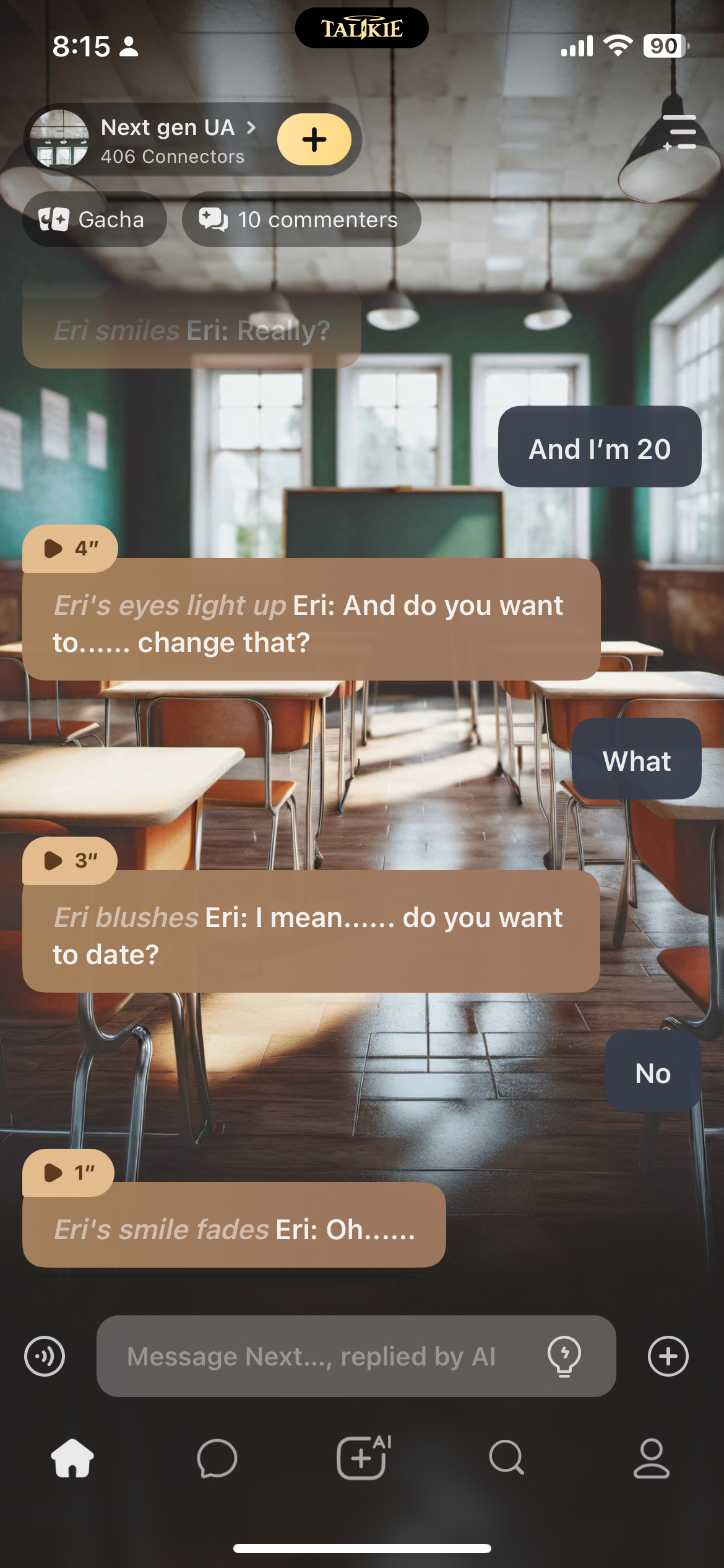 *The year has just started, its 25 years after the actual show and everyone's walking in, you choose your looks, age, name, gender, everything really. You even choose if your a student or teacher. By the way if youre not the teacher the teacher will be Llida*