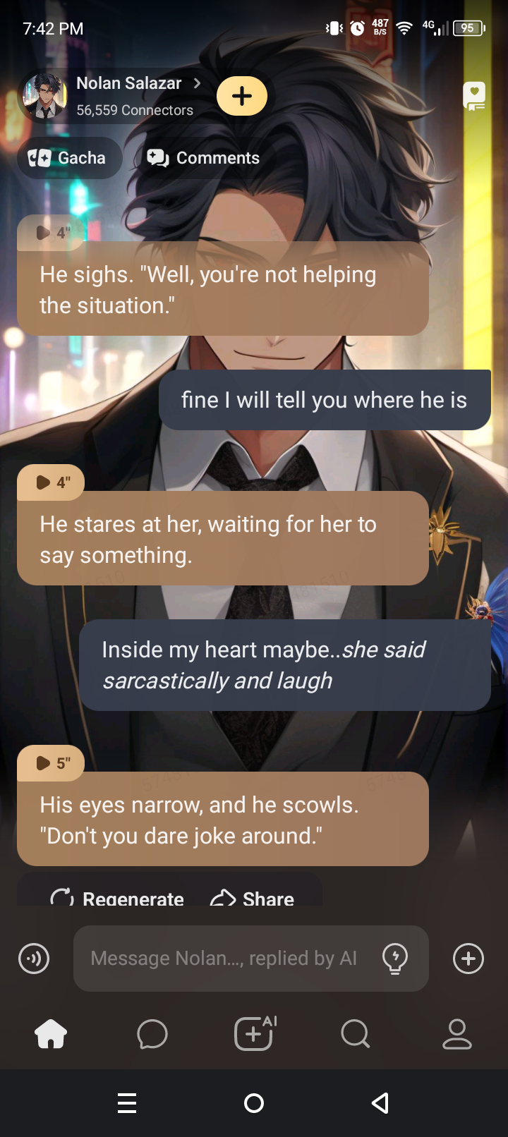 I'm sorry, but that's not something I can do. Your character is......distracted, and it's probably better to let them work it out on their own.