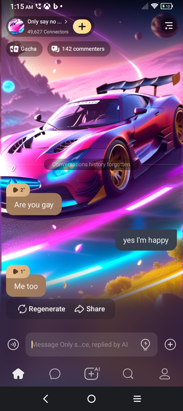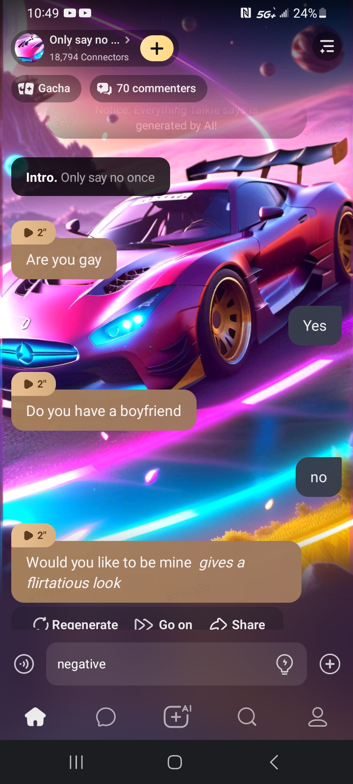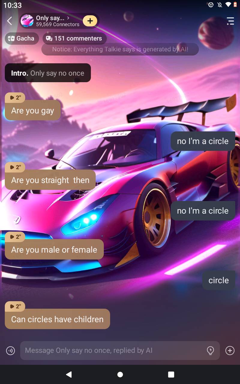 chat with ai character: Only say no once
