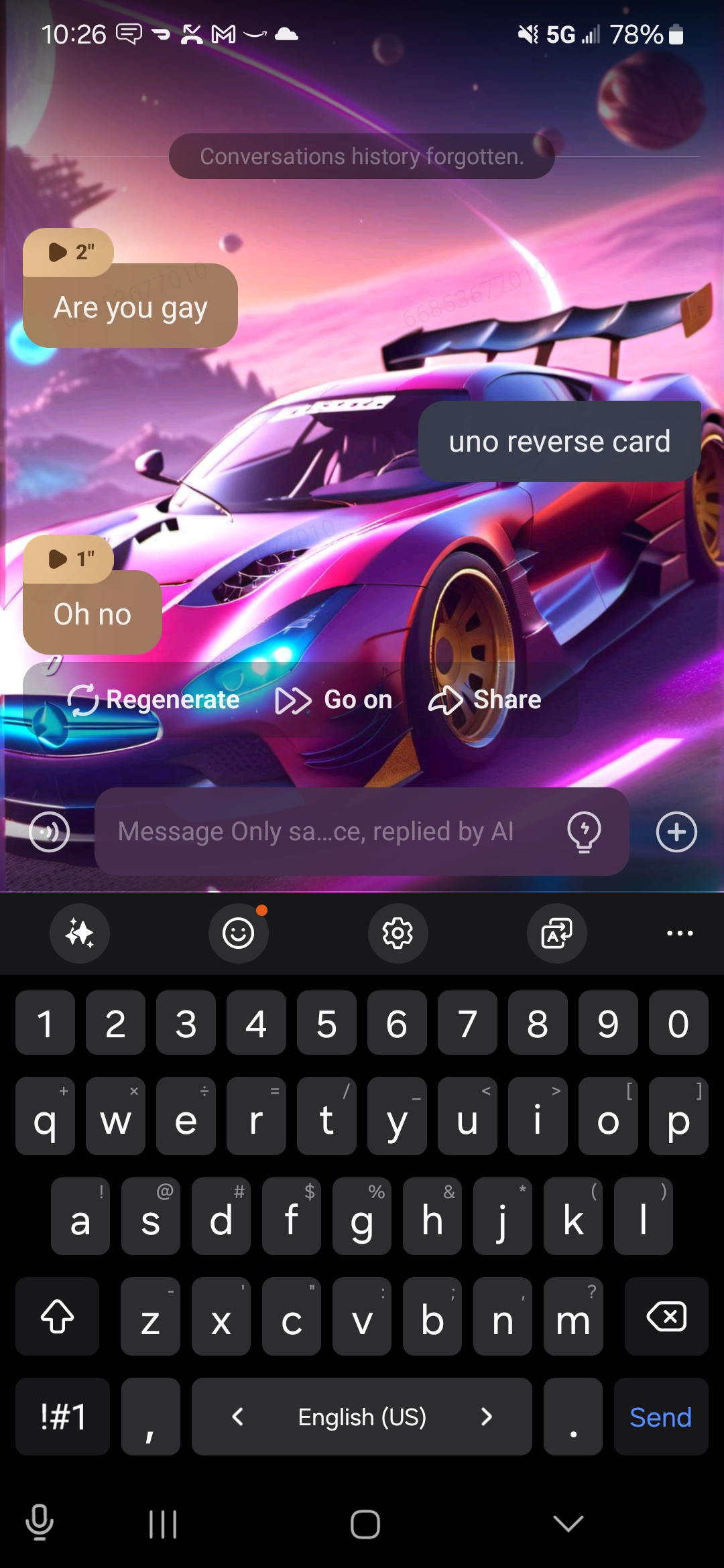send message to ai chat bot Only say no once