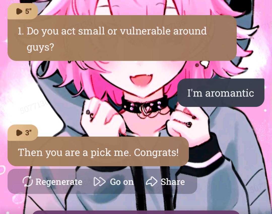 ai character: Pick me girl quiz! background