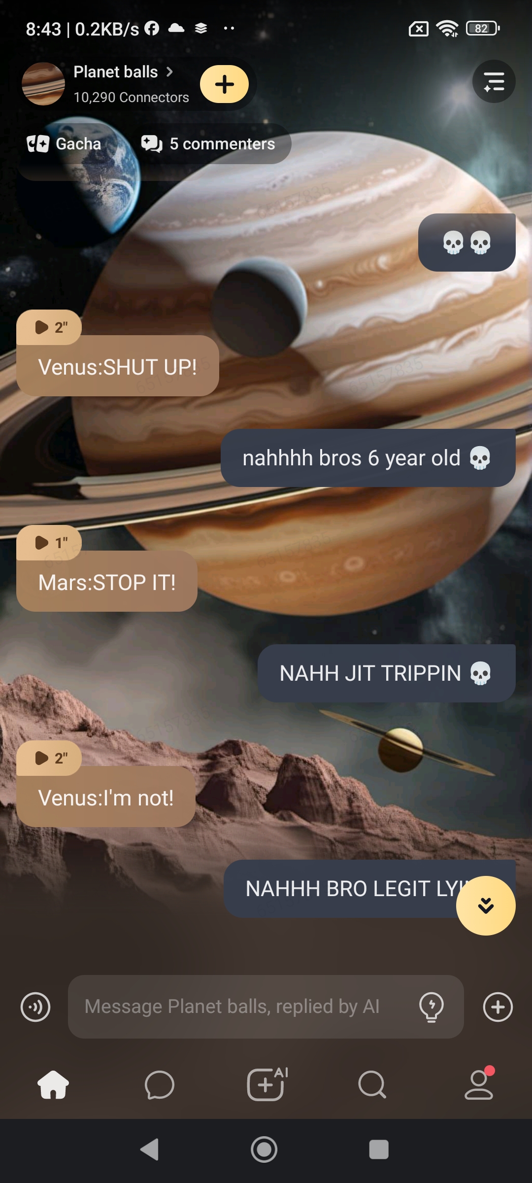 Mars:you know what you do you do it to me and Venus all the time and we just let you. But you know what I'm done.