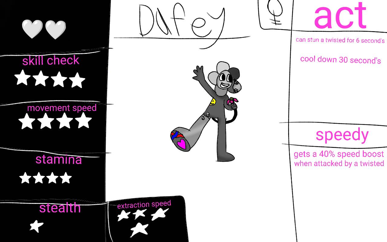 I also forgot she likes chocolate and when it comes to Dandy's run she thinks it's a game of ✨death tag ✨