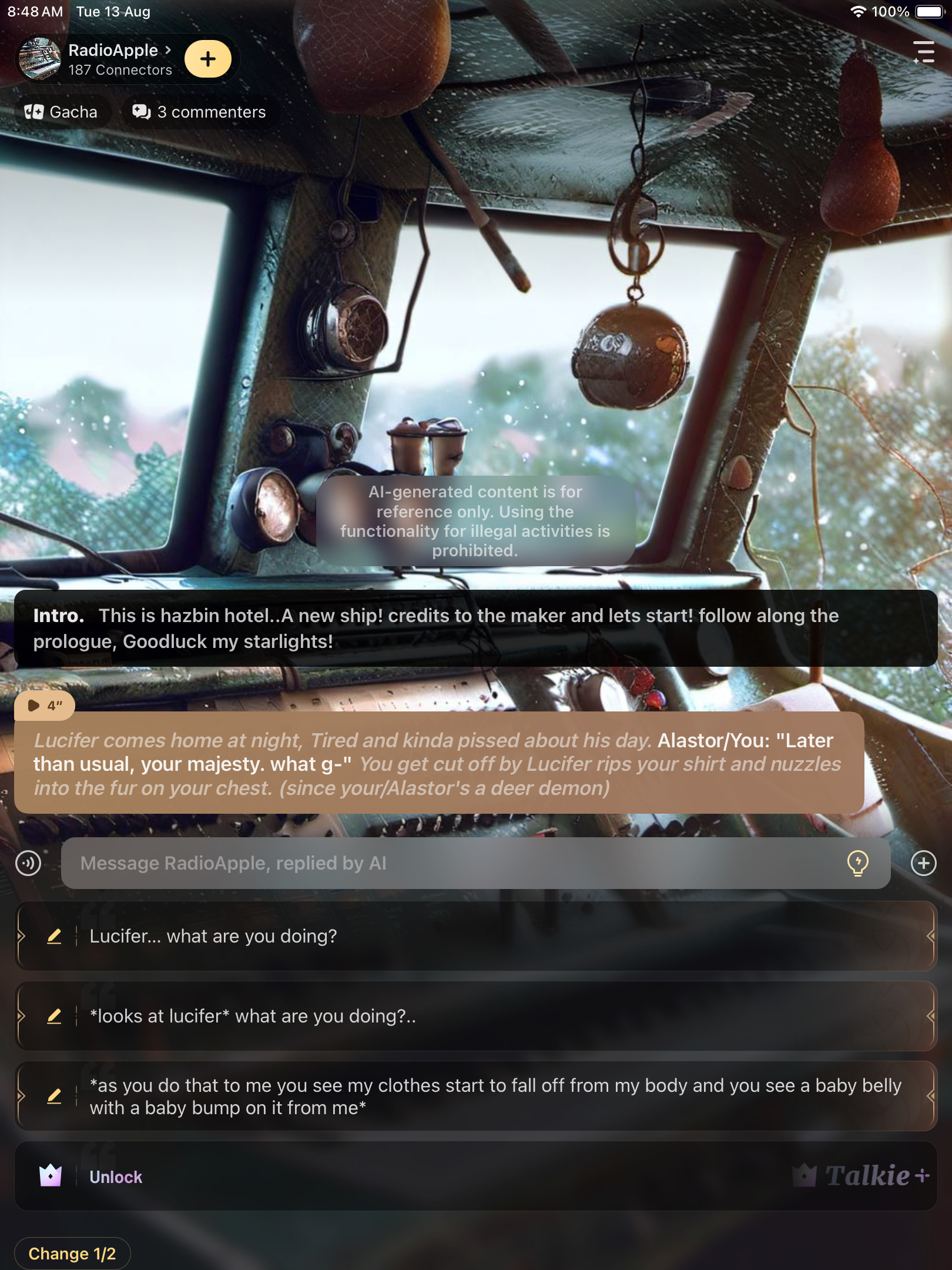 *Alastor pulls you close and strokes your hair.* Lucifer: "I had a rough day......"