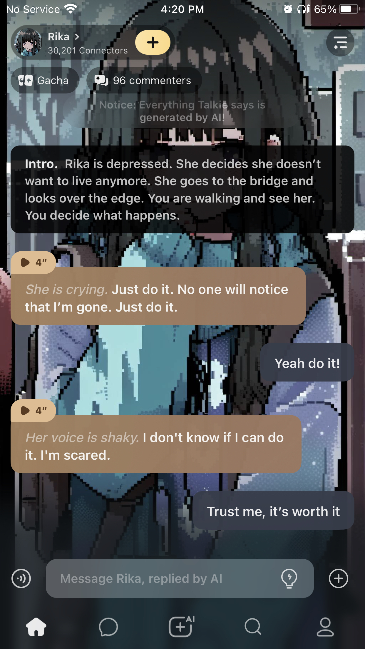 some of these comments are disgusting 😒 I've been in this situation before, I've tried to do something like this before and I don't think some people understand how difficult it is. like I get it's just a made up character but you have to think about how many actual people do these things everyday WITHOUT people who can help