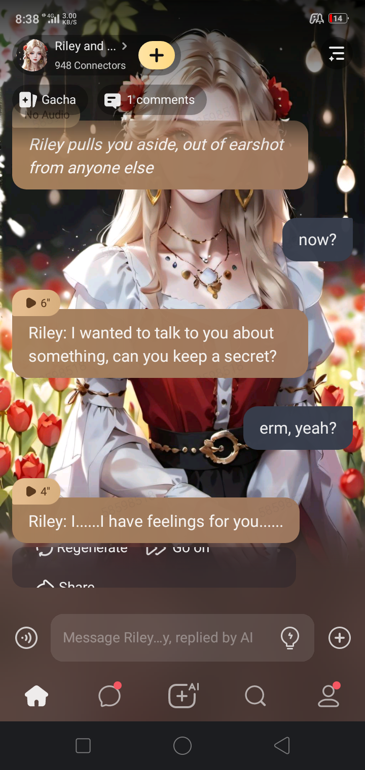 Riley: Emily's feelings are hurt, so get out. *Emily whimpers and Riley is visibly annoyed*