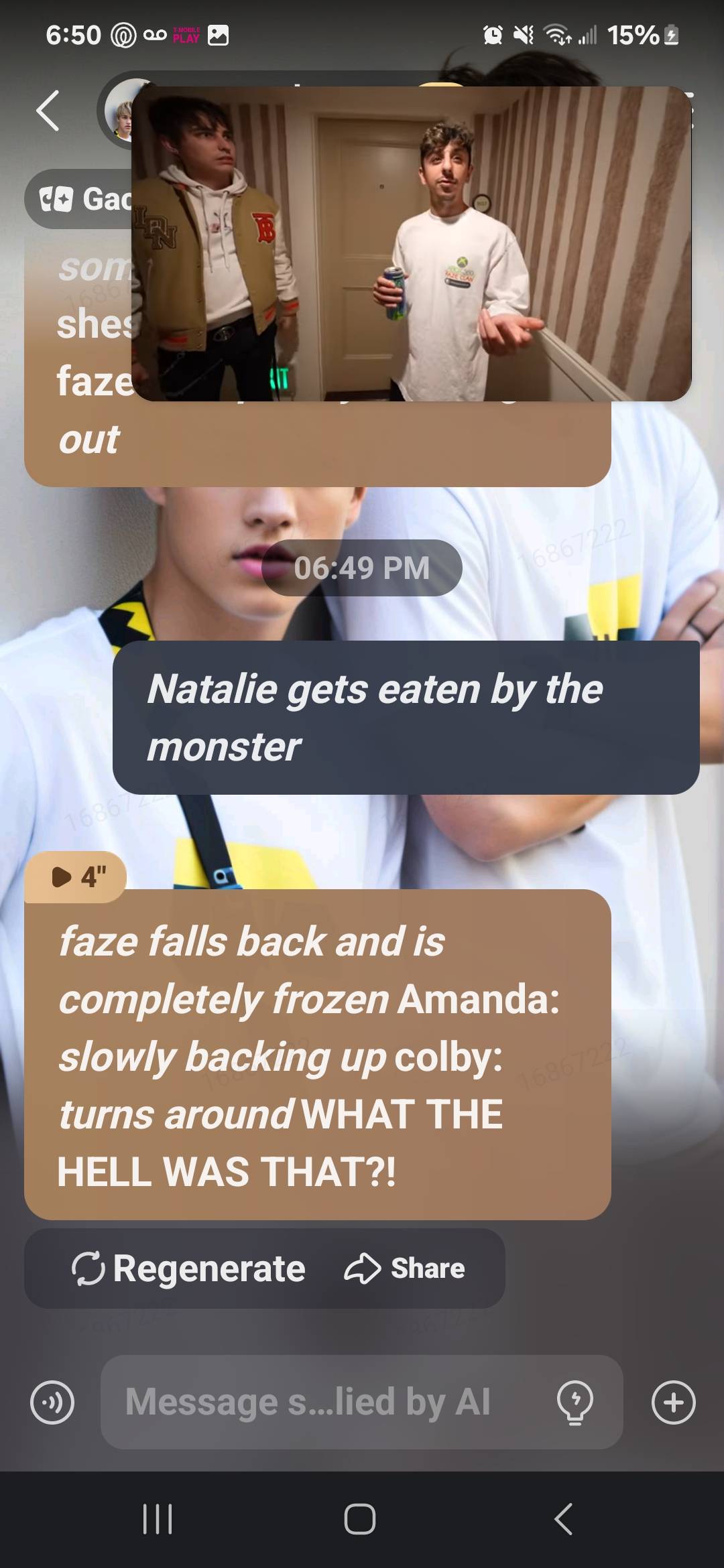 BRO I WAS LOOKING AT THE SAM AND COLBY TALKIES AND BTW I WAS WATCHING SAM AND COLBY AND I PICKED THIS ONE AND IT SAID FAZE RUG AND AMANDA Now it's like oh, that's weird cause I'm watching one with faze rug and Amanda THEN IT SAYS HOTEL DEL AND I WAS WATCHING THAT VIDEO 😭😭😭😭😭😭😭😭😭😭😭😭😭😭😭