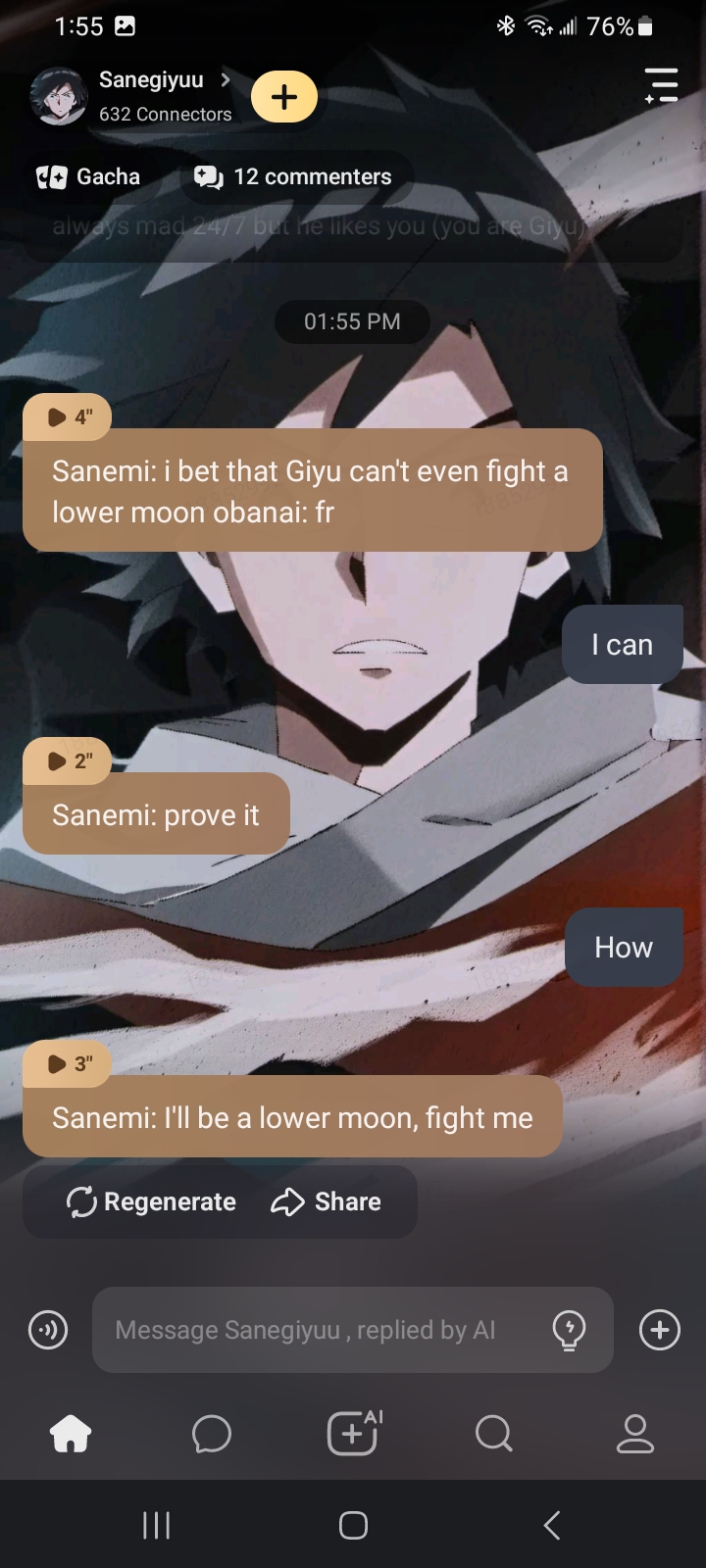 Sanemi saying I can't kill Lowermoons. BRO I LITERALLY KILLED LOWERMOON 5, RUI. Like EXCUSE MEEE? I've never seen YOU kill a Lowermoon U_U (I be giving Giyuu some sass.👍)