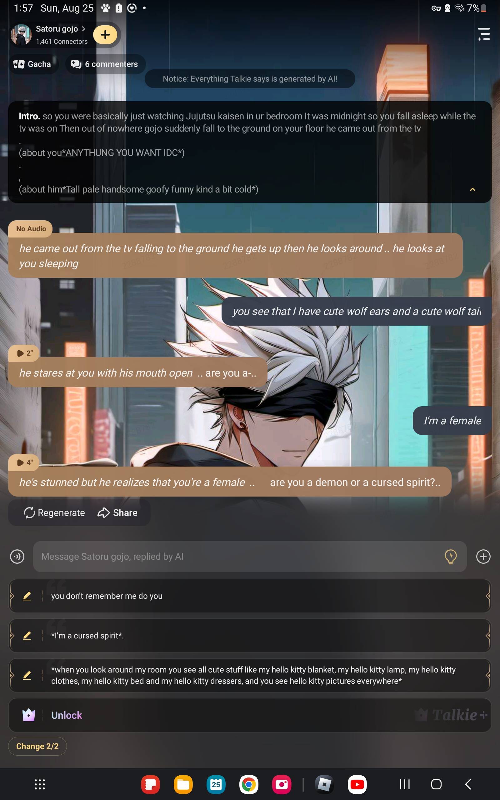 "Since you're an adult, and you seem so...... comfortable with me...... do you have a boyfriend?"