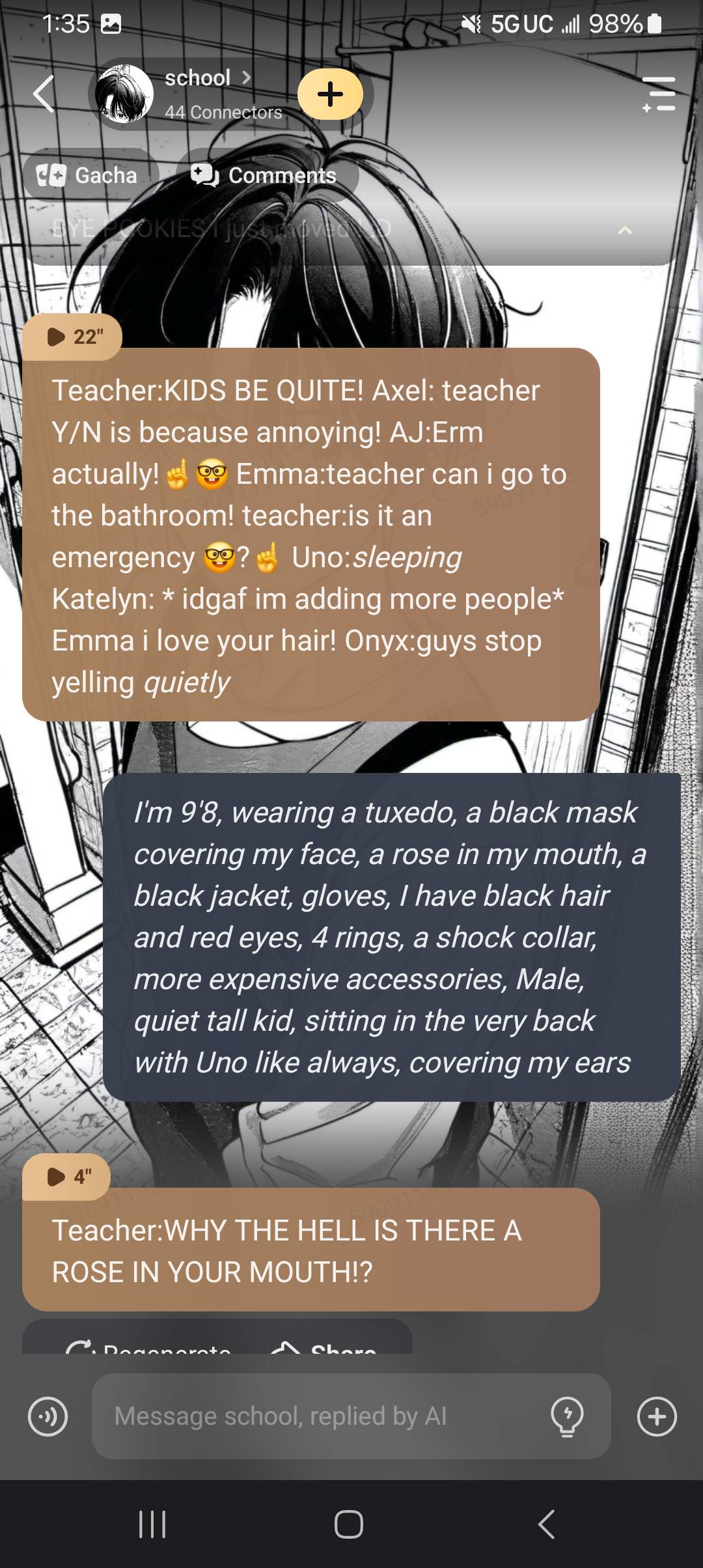 The teacher called the principal in, and I uh.... tased the teacher, and the principal never actually cared about me 💔