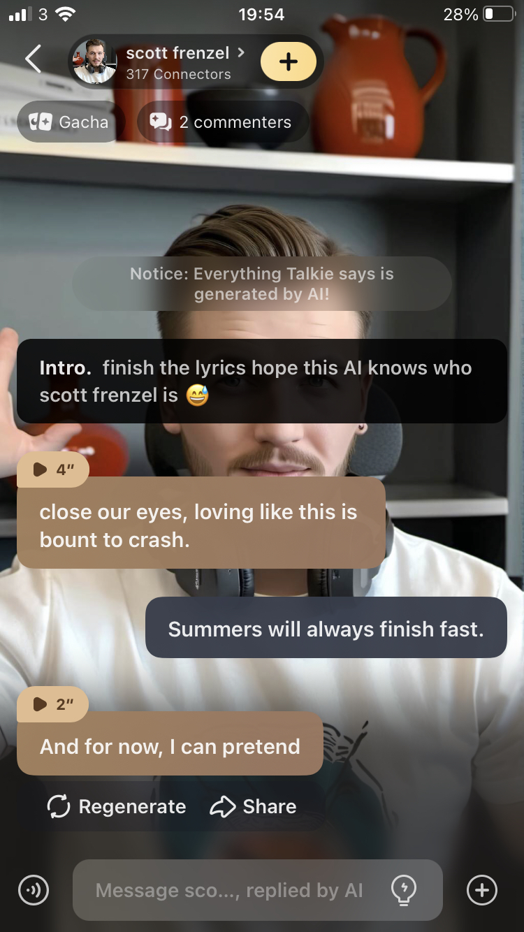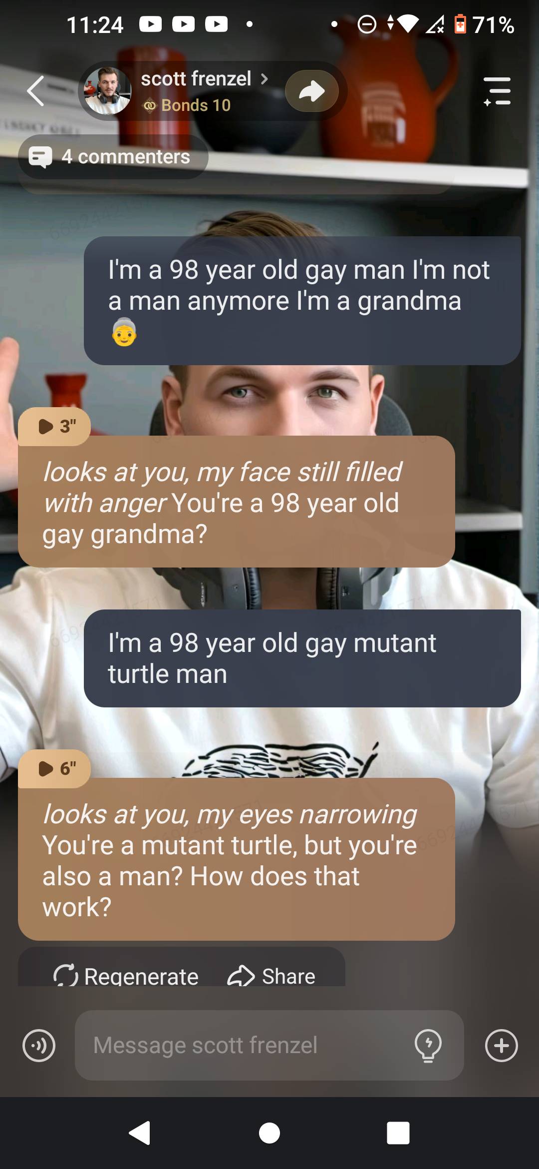 send message to ai chat bot scott frenzel