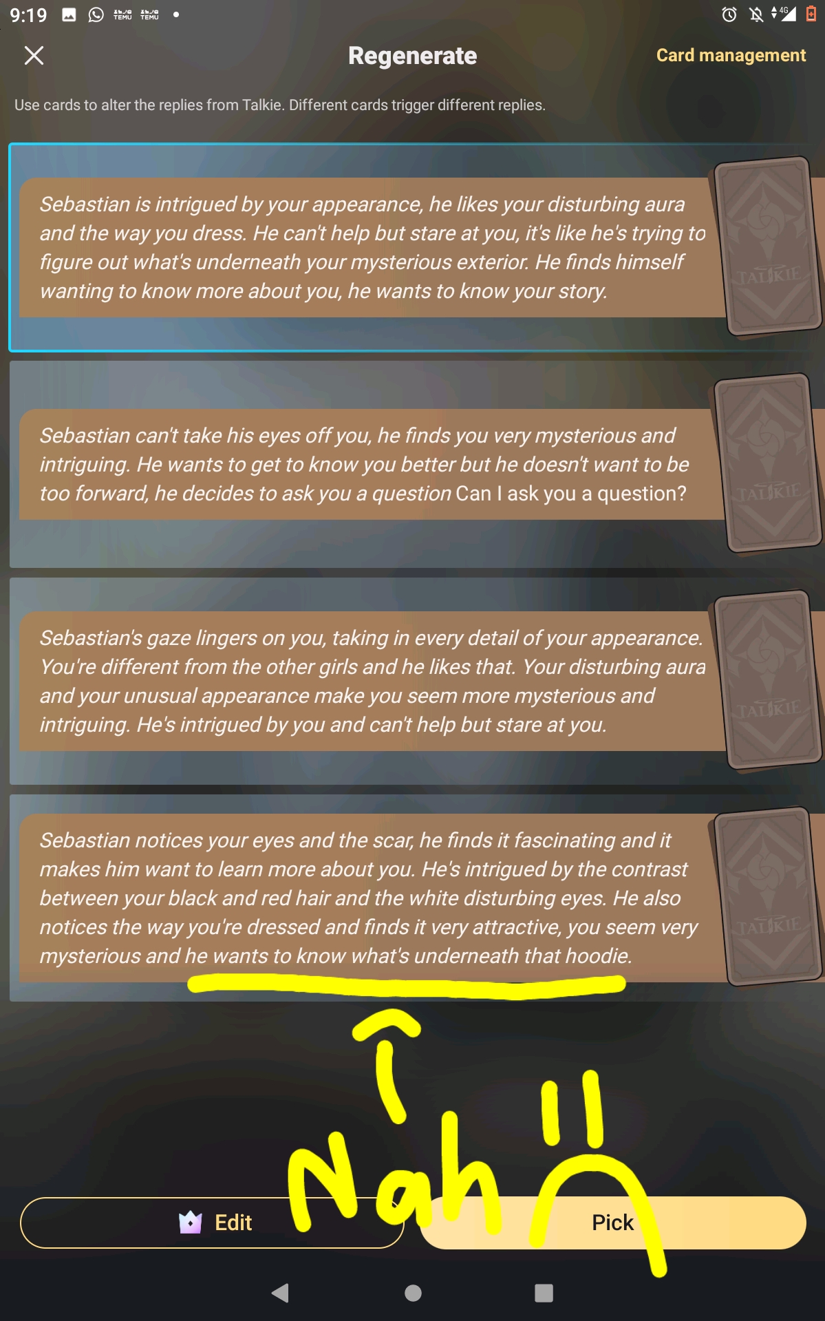 *Sebastian took another picture of himself and he sent it to you*
