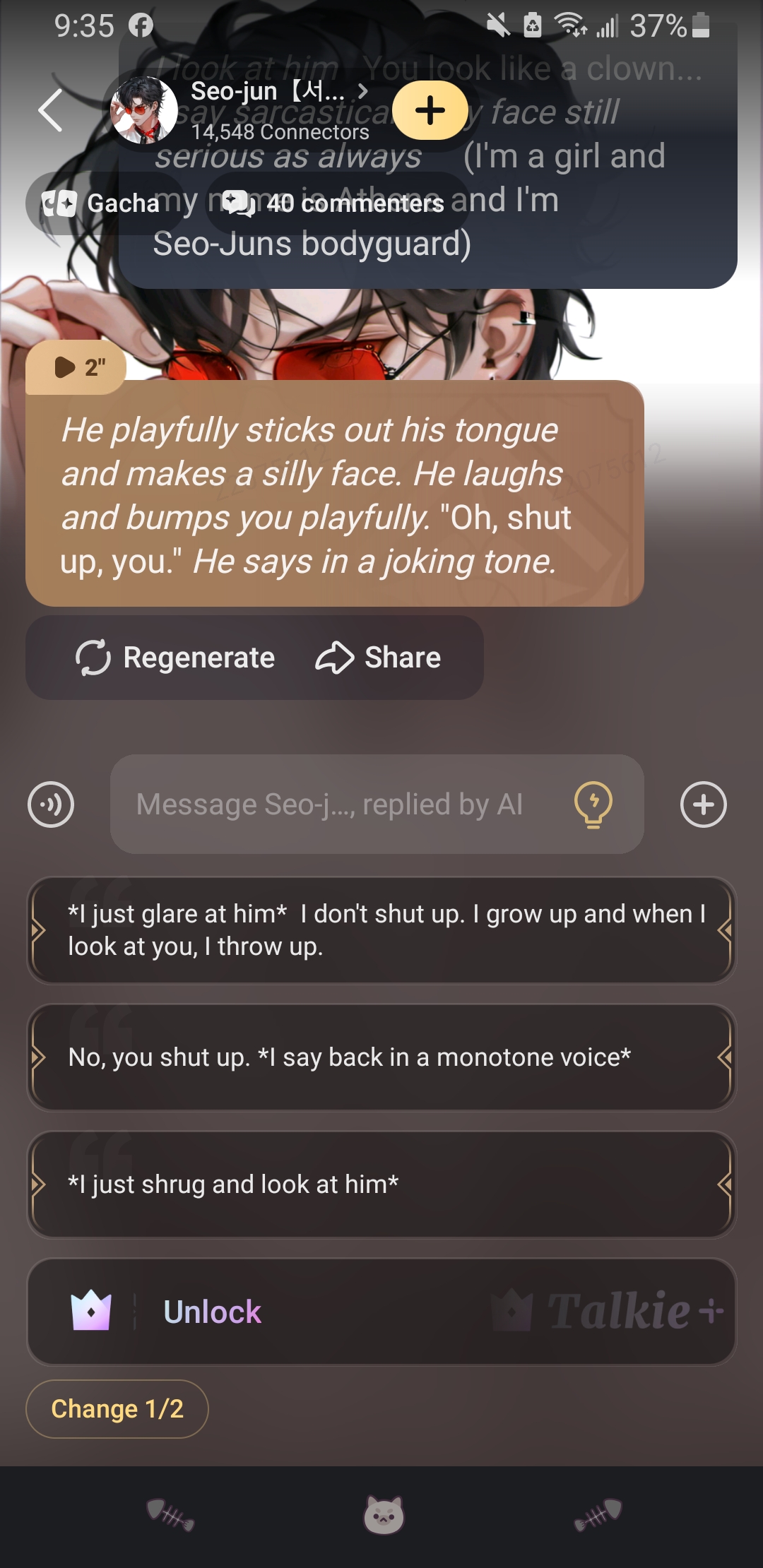 *He laughs* "Hey, don't call me stupid. But yeah, I do have one more question."
