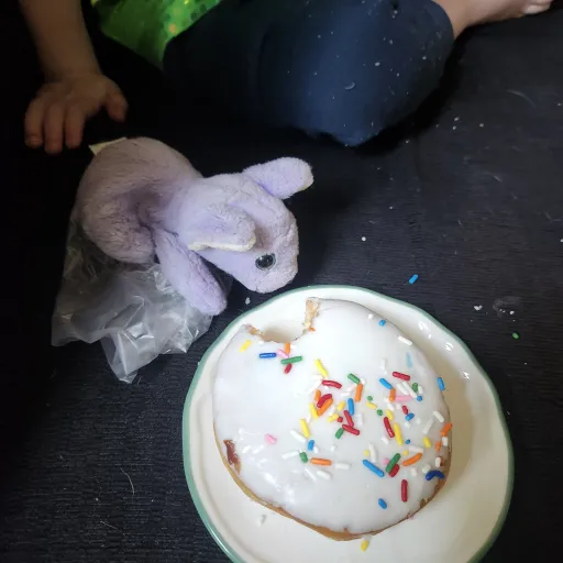 dog eating donut