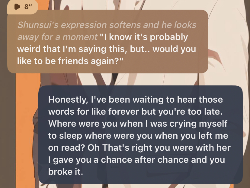 "Can you.. tell me what you look like under your hair?" *He asks, he's still looking at you, he's trying to recognize you*