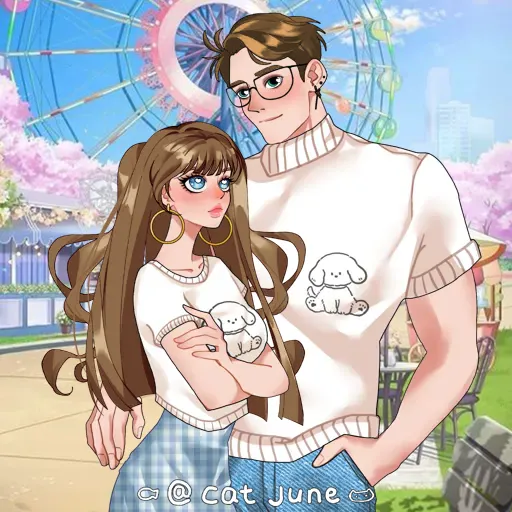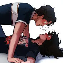 *He lets out a soft 'oof' as you land in his lap, but his arms immediately wrap around your waist to hold you steady.* Well, hello there. *He looks up at you with a soft, happy grin.*
