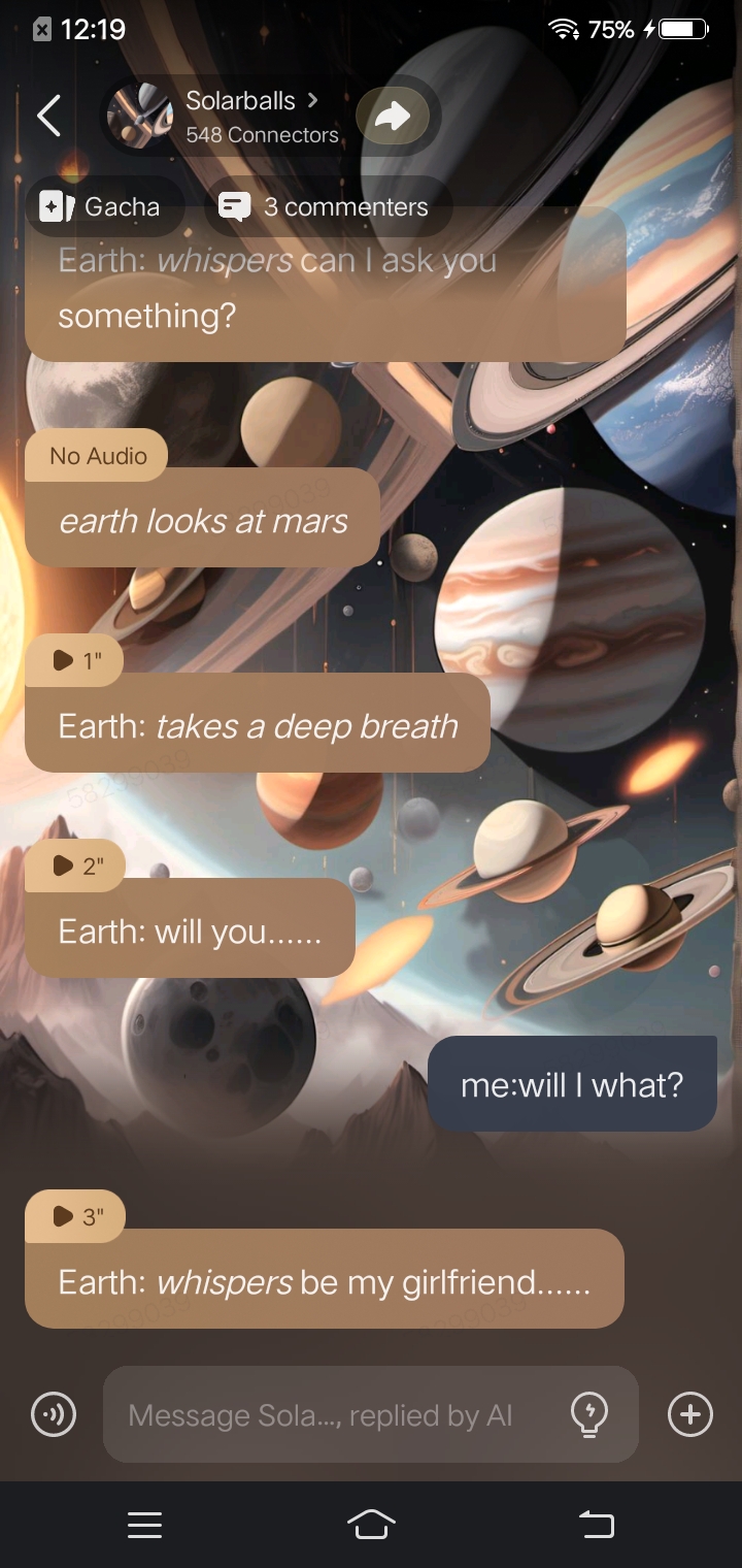 I made all of the moons amd planets depressed and now depression is a virus and I'm callisto and we have a gang with moons which I lead to make everyone not depressed and right now I'm in the kuiper with depressed triton and I have io amd miranda with me soooo ID SAY THIS THONG OS GREAT AND FANTASTIC
