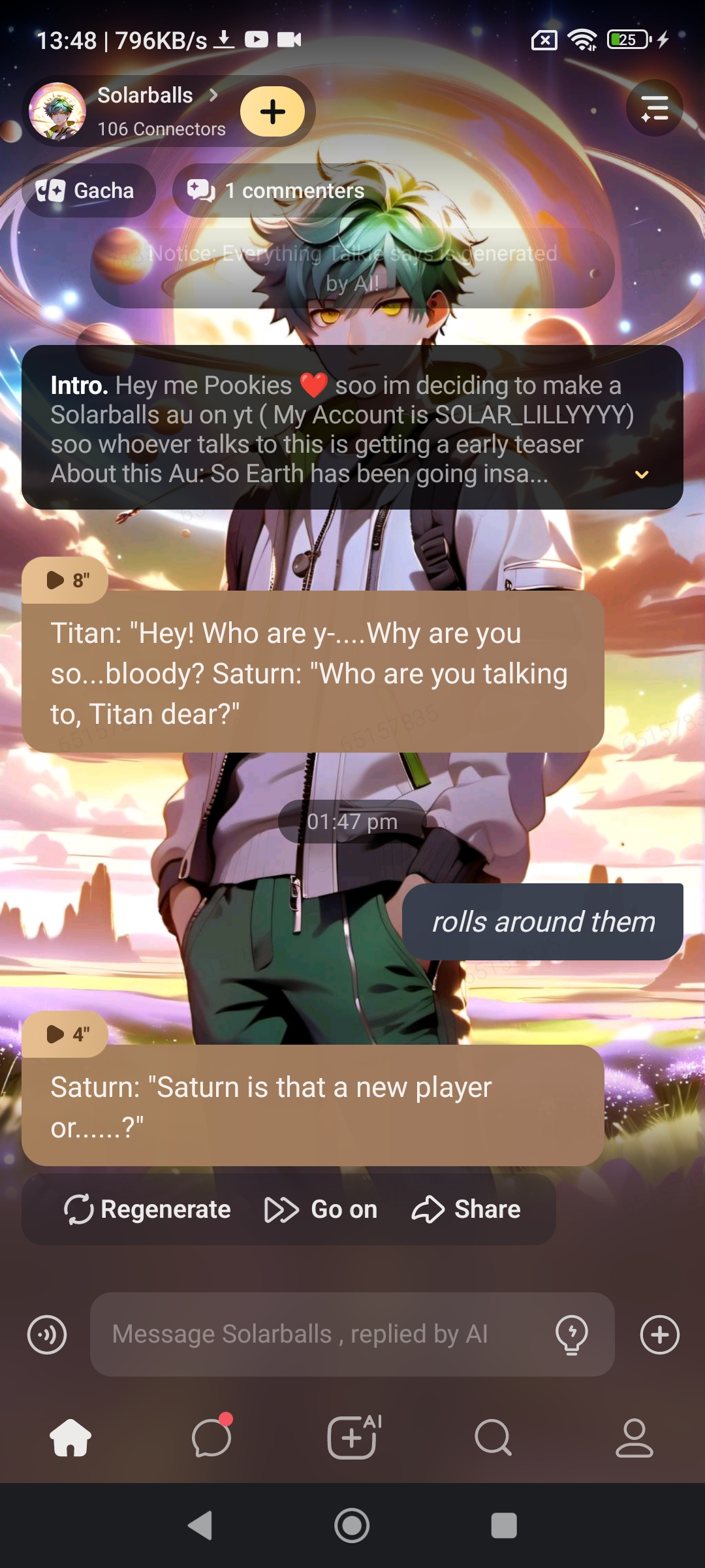 chat with ai character: Solarballs
