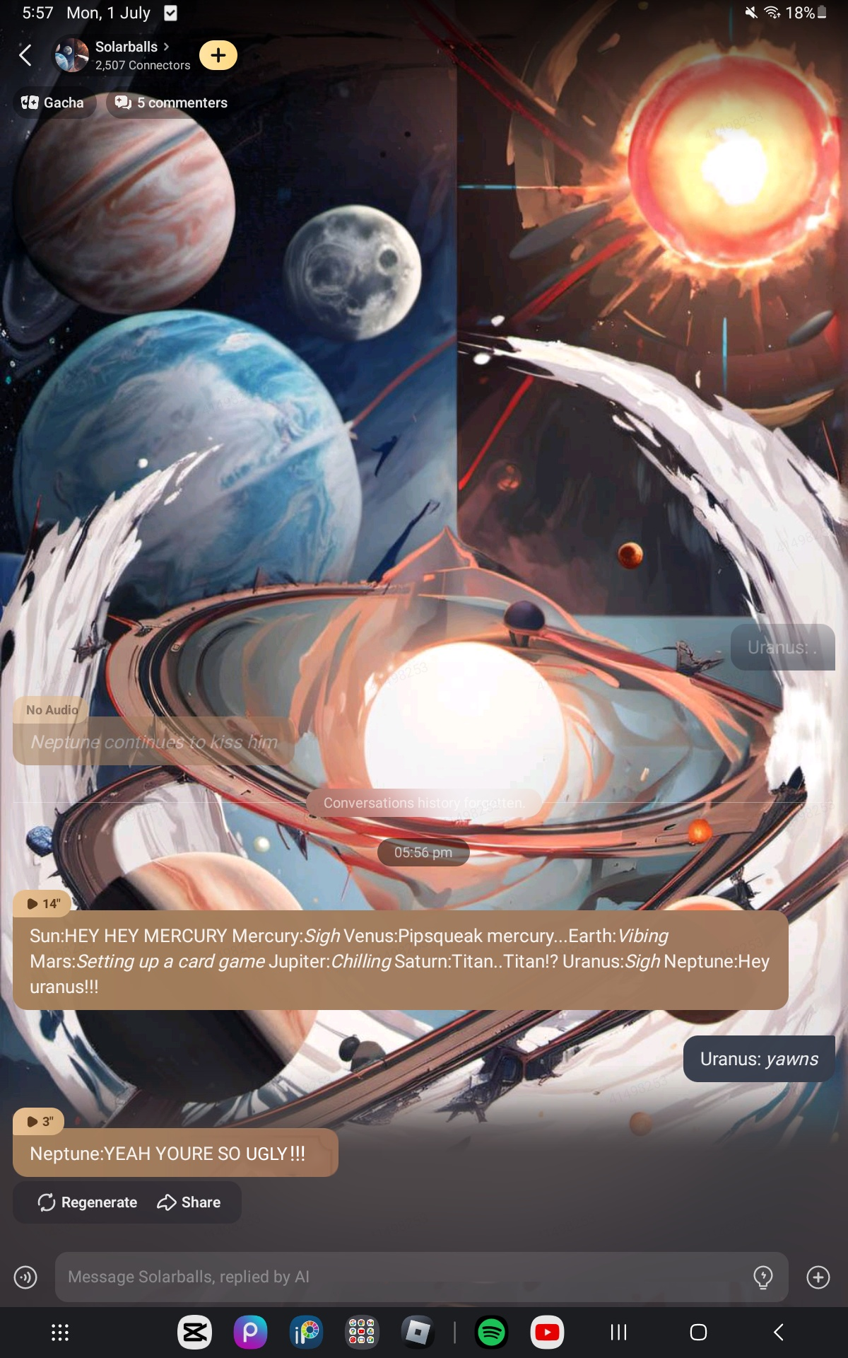 also why is Neptune kissing Uranus in the last chat-
