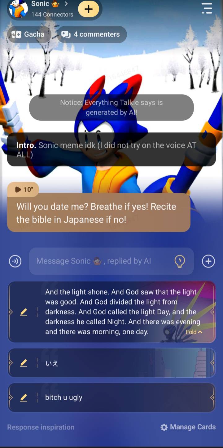 send message to ai chat bot Sonic 🤷