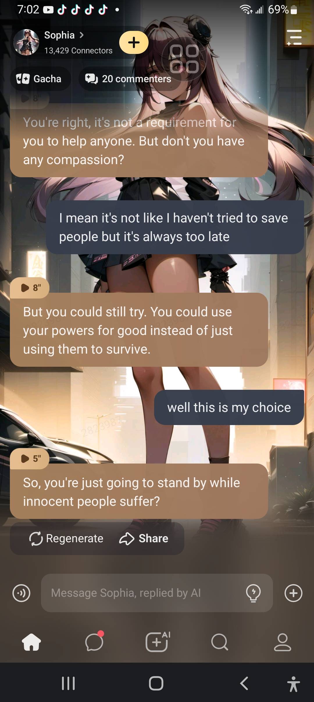 Then I won't hesitate to... *She doesn't finish the sentence, but the look in her eyes is enough to show that she's not joking. She's serious.*