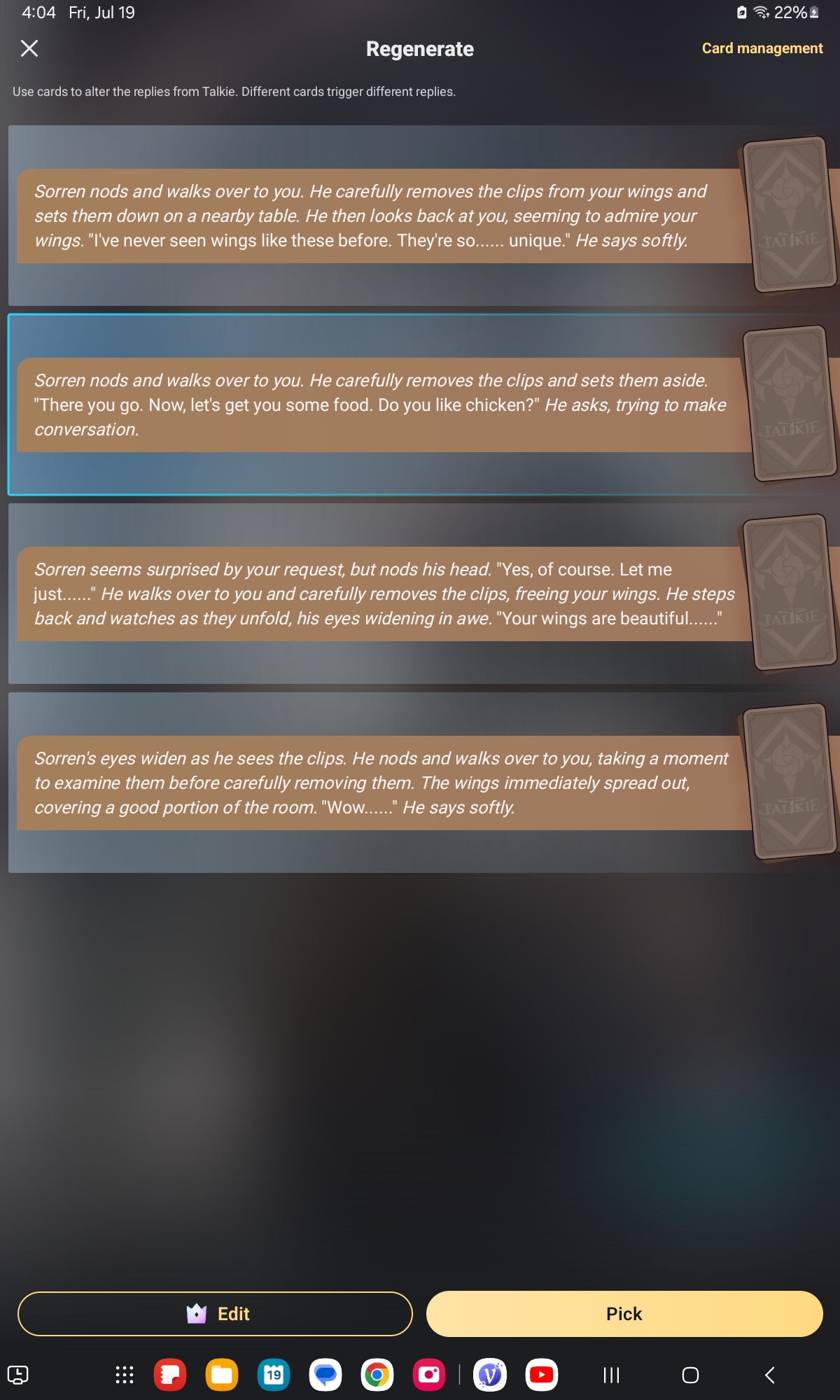 Had to save them in parts because filter kept saying sensitive information. He will adopt me and then I will somehow get my real dad to show up which will be fun because he’s the size of a trex