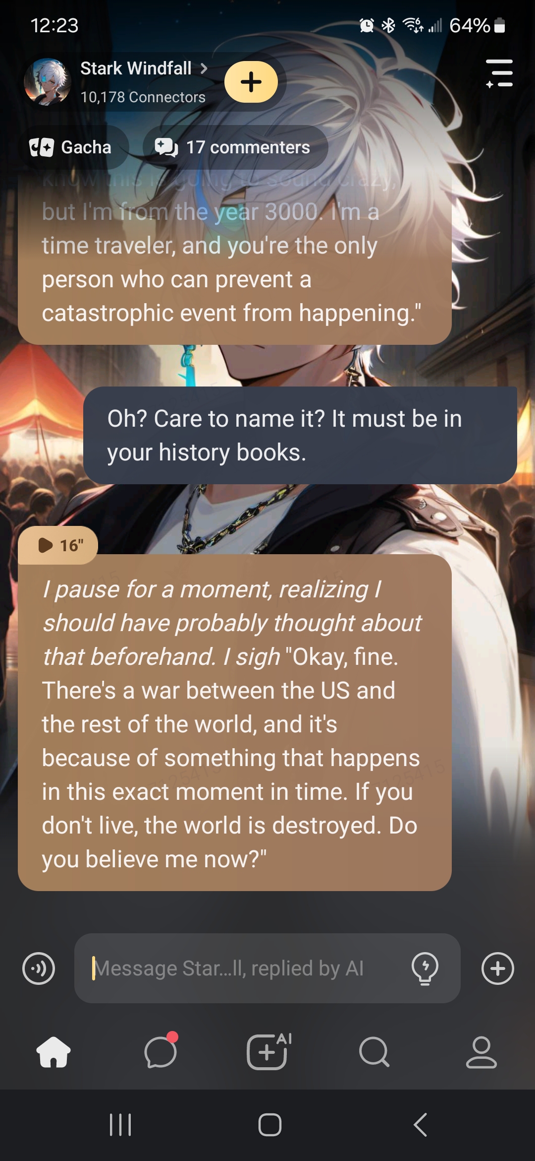 *I hesitate for a moment, not sure how to answer that question. I look away for a moment and then I look back at you* "It's complicated. But the short version is that they're trying to protect the timeline from being altered."