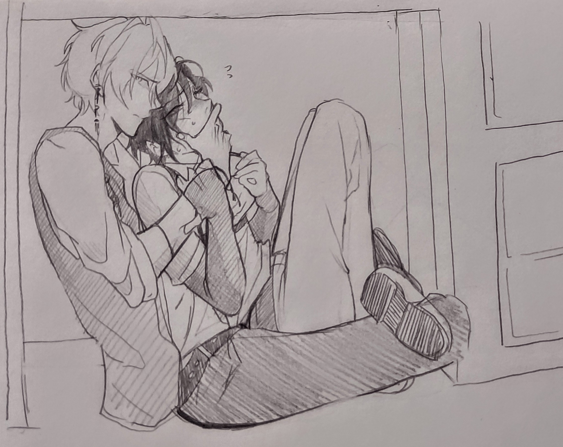 While we were running away he pulled my character under a desk and this is where we are now. I decided to draw it.