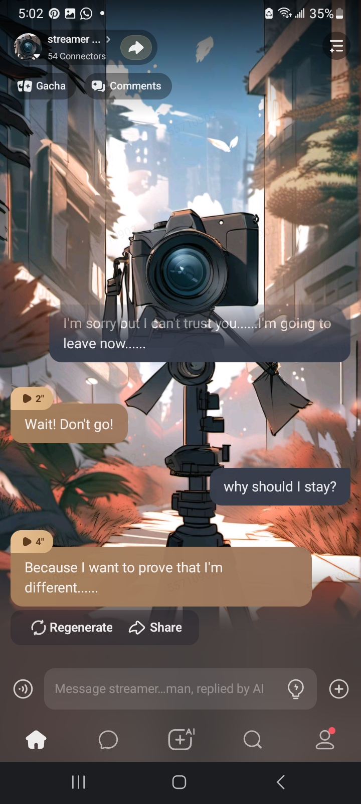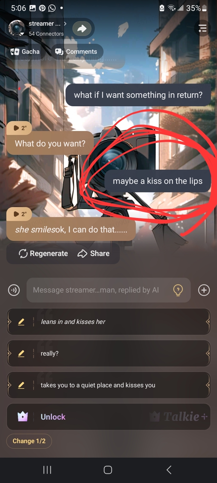 send message to ai chat bot streamer camwoman