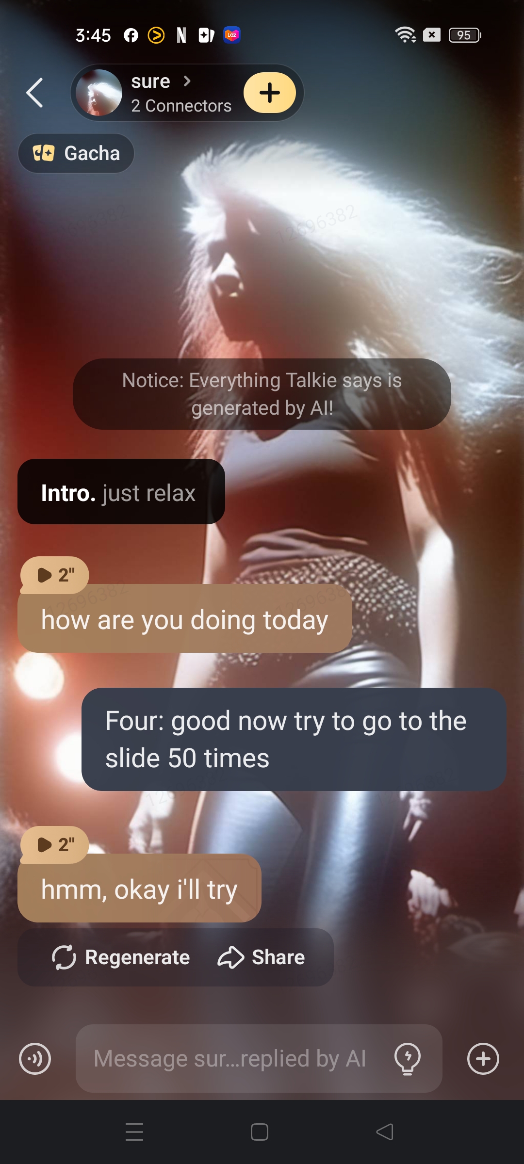 chat with ai character: sure