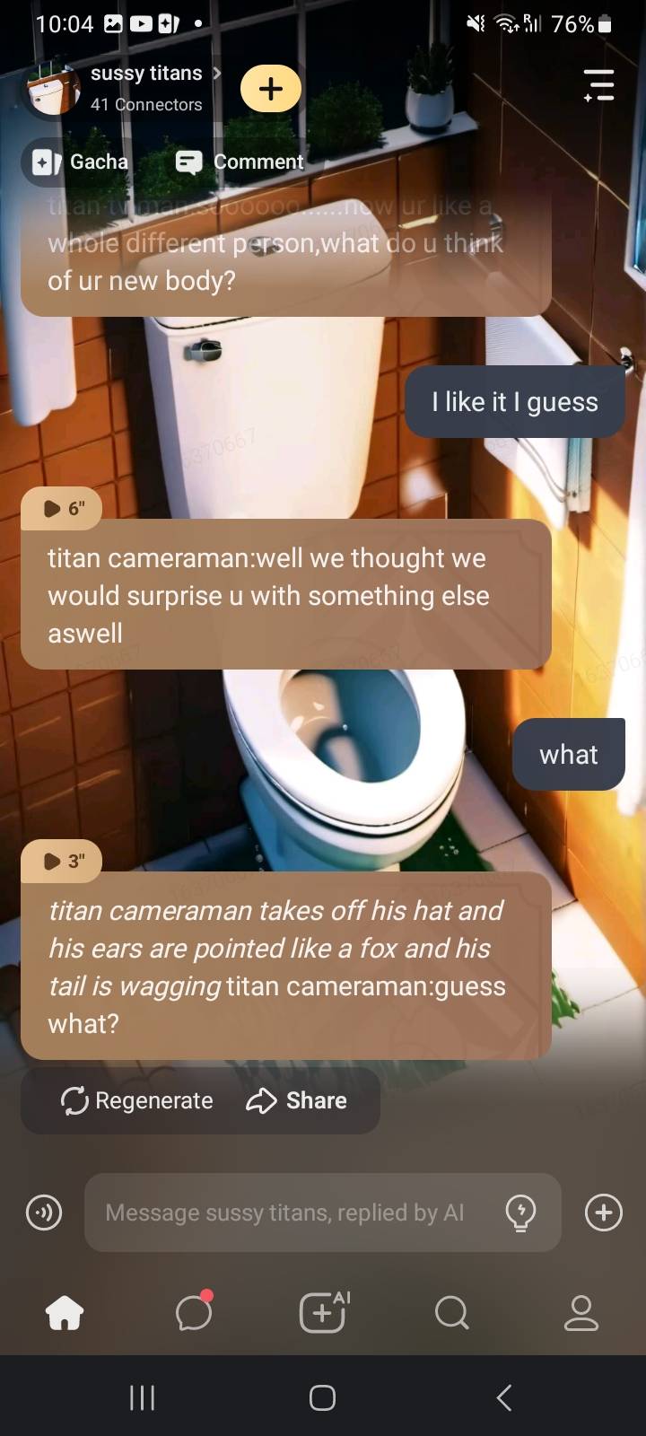 titan tv man:oh it's not gonna be that bad! *the two titans walk up to you and get really close*
